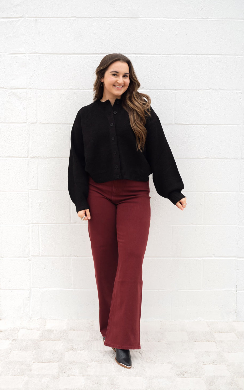 Mineral Washed Wide Leg Comfy Pants: Burgundy