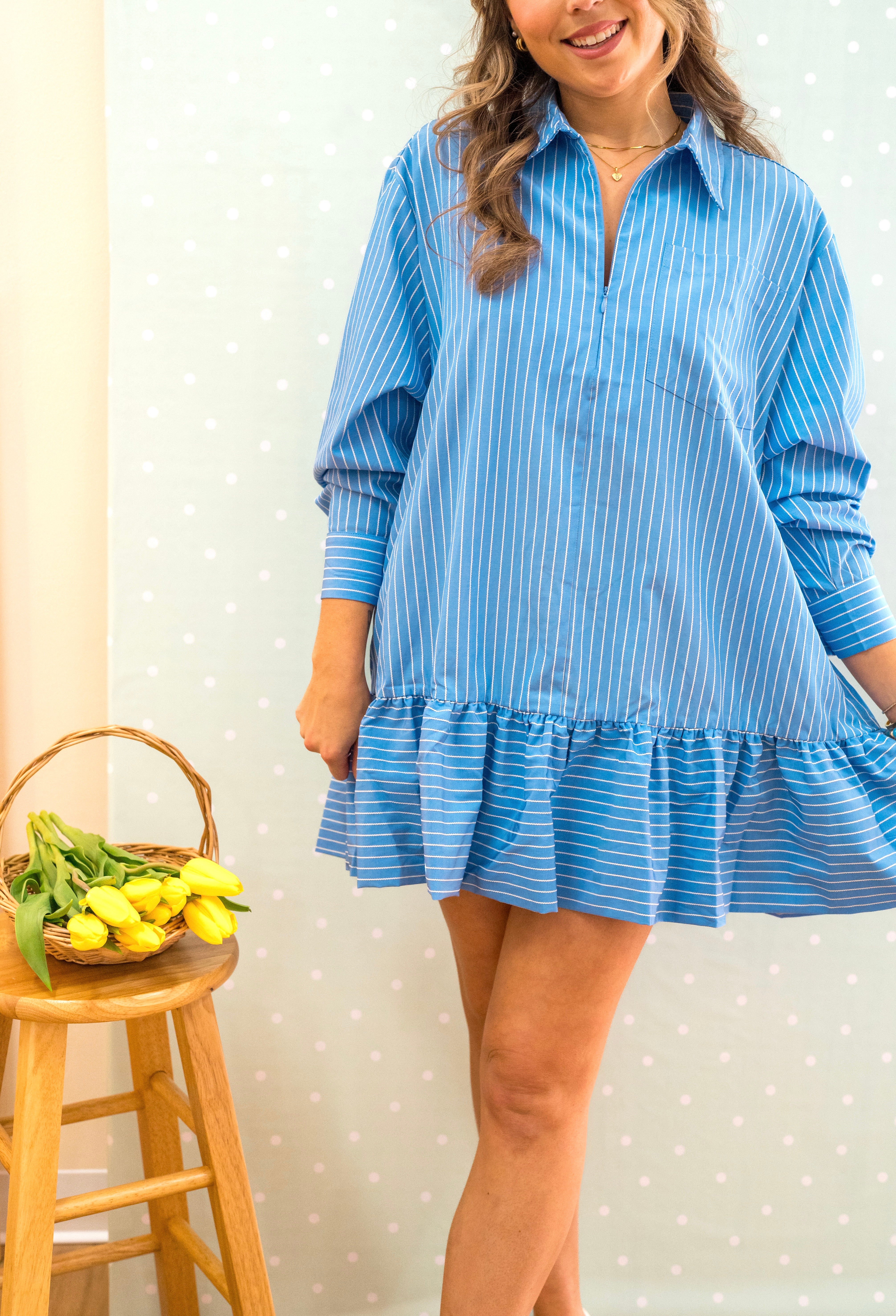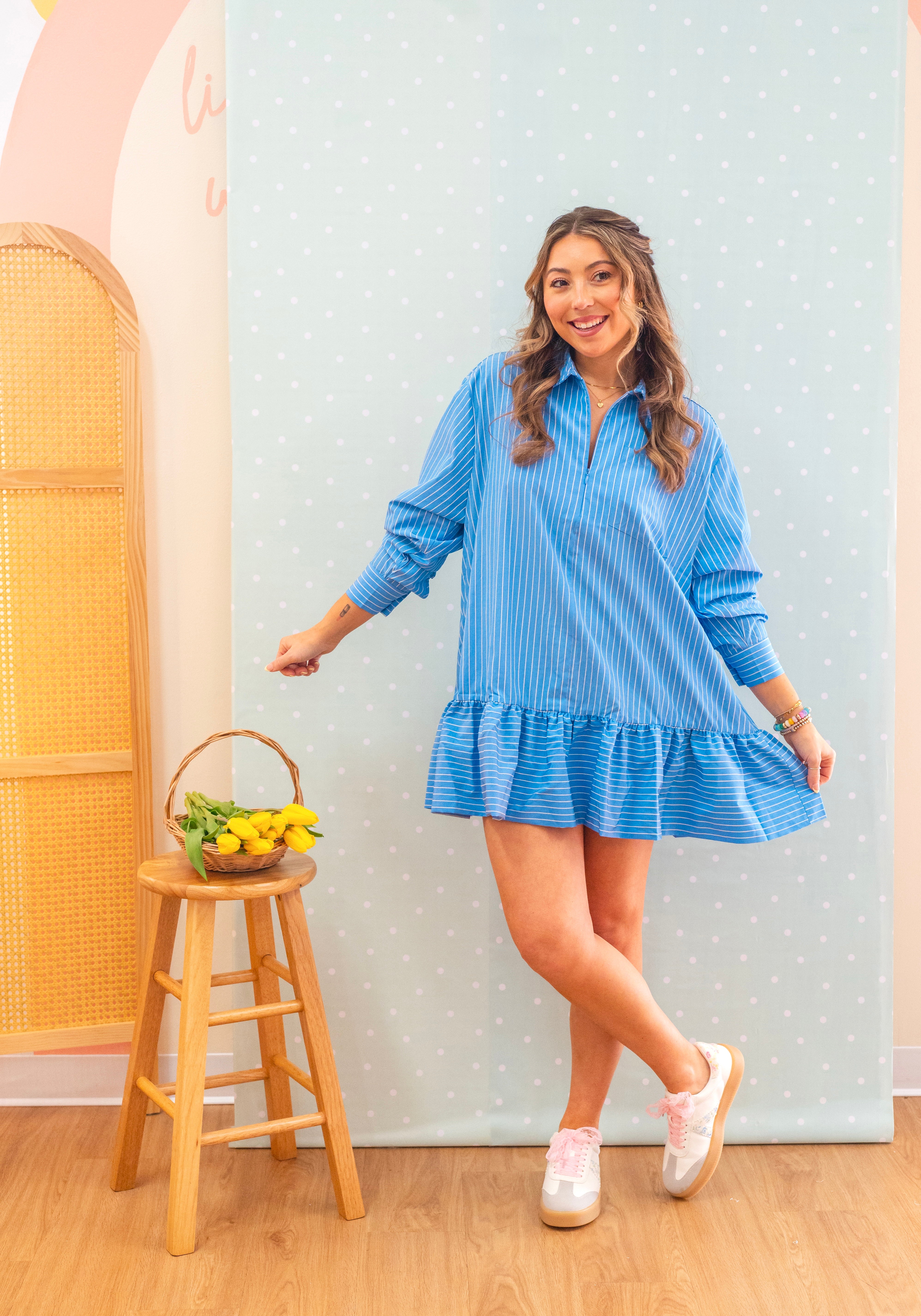 Layer up with this charming blue and ivory striped cardigan—a wardrobe essential that's equal parts cozy and chic. Featuring a relaxed button-up silhouette, rolled hem detailing, and long sleeves, it's the perfect throw-on piece for effortless style. Whether you're dressing up basics or adding warmth to your favorite outfits, this striped sweetheart does it all with understated flair.
