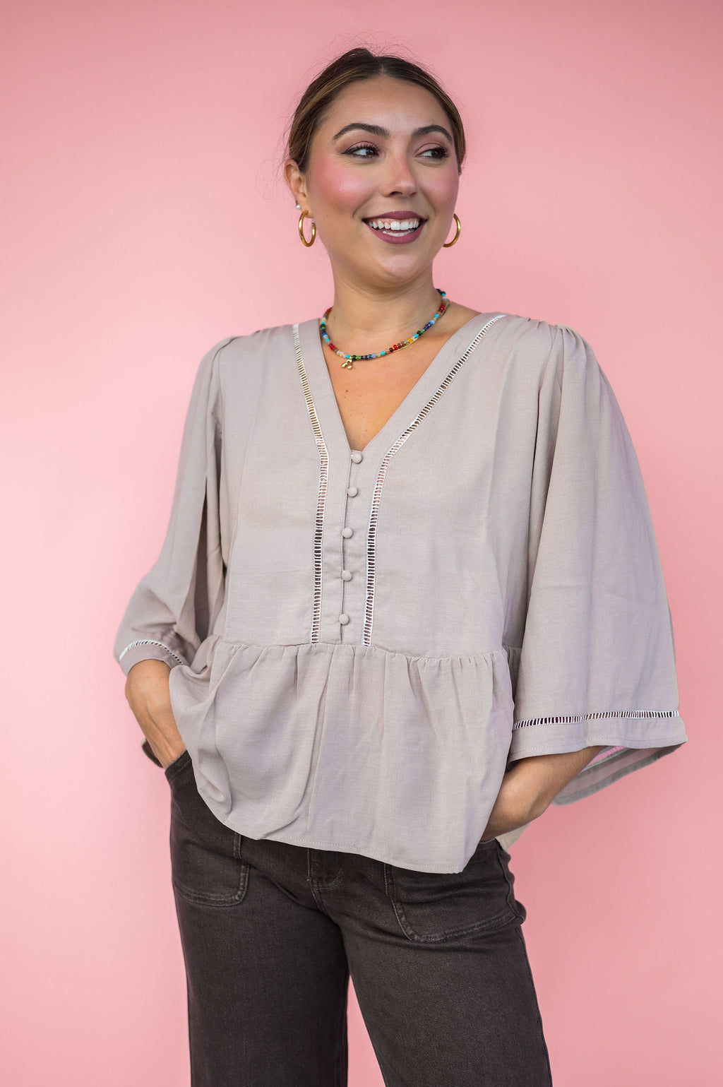 POL Free Spirit Studded Zip-Up: Beige Pink