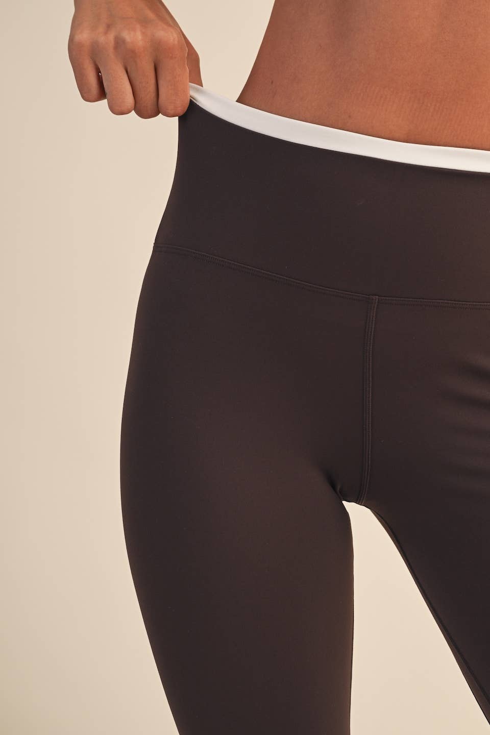Leggings with flattering contrast waistband for a sleek, elevated look. Moisture-wicking, stretch fabric.