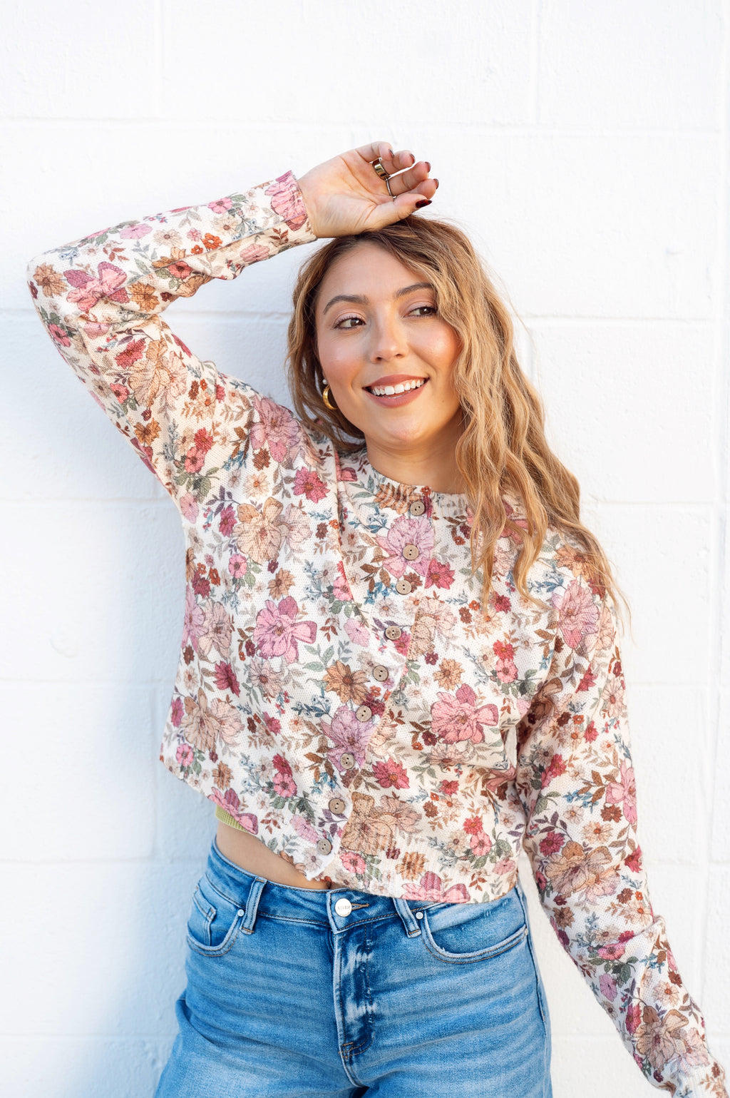 Rustic Mixed Floral Flutter Sleeve Blouse