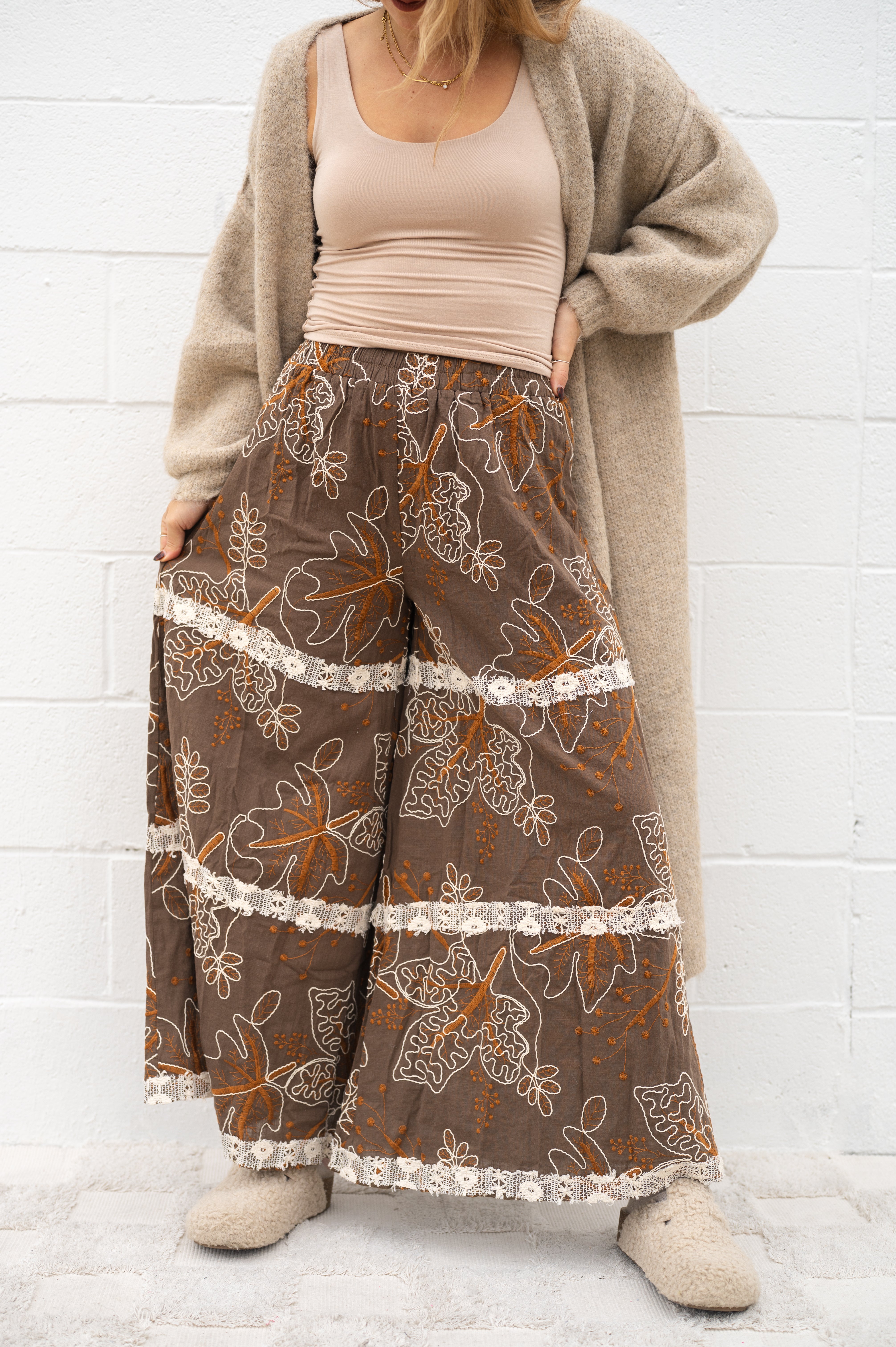 POL Leaf & Lace Boho Pants