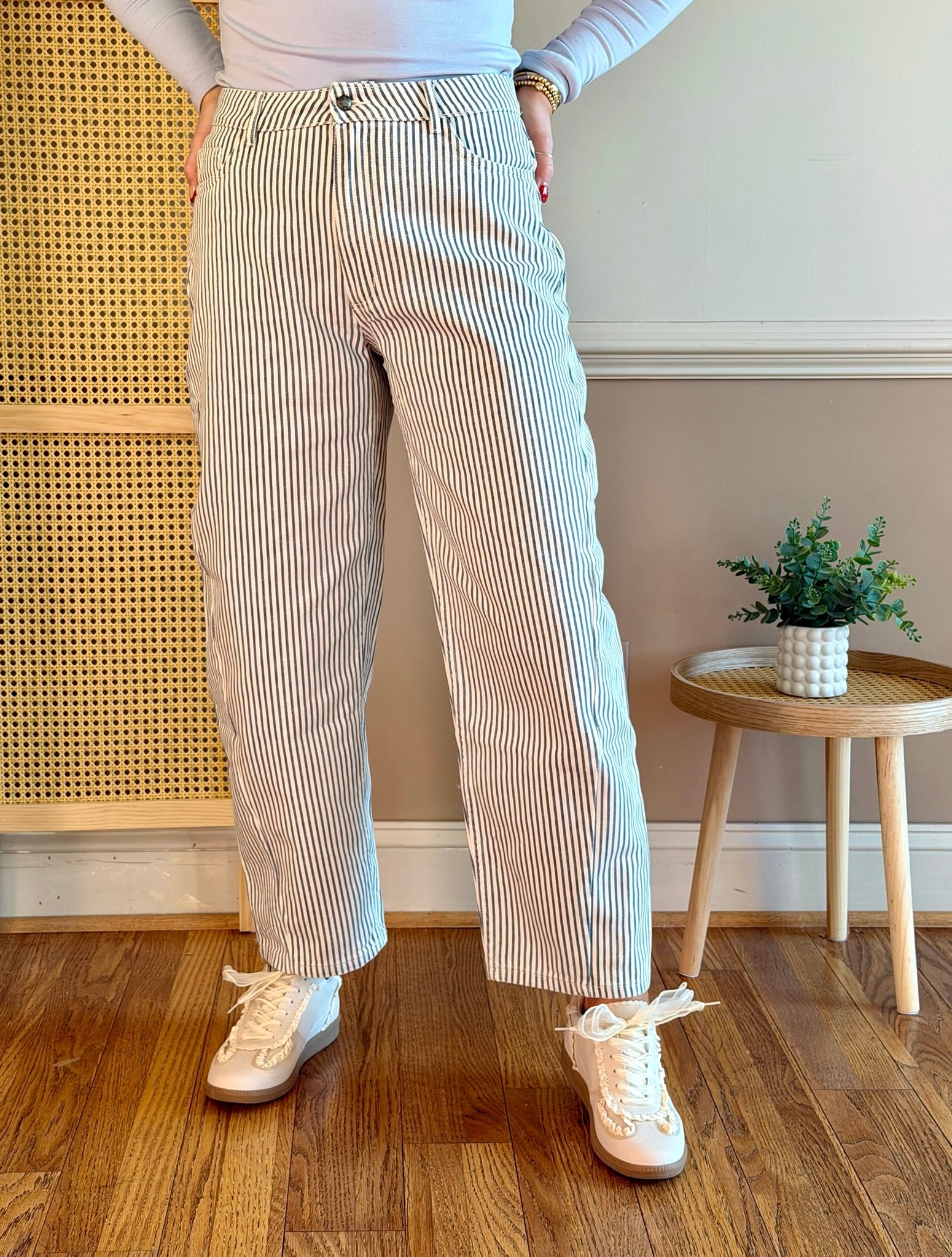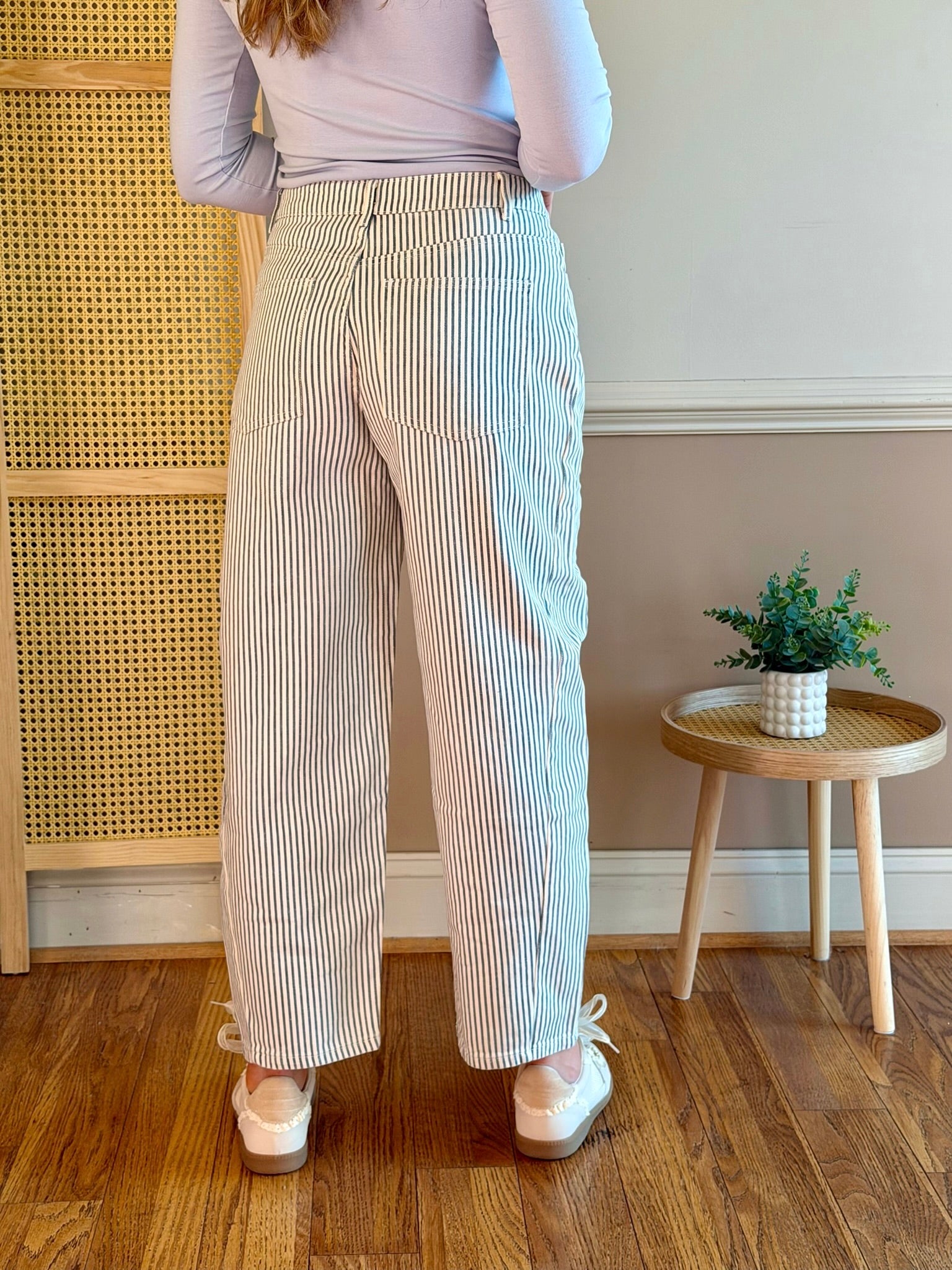 RYLEE + CRU Barrel Pant: Natural Railroad Stripe