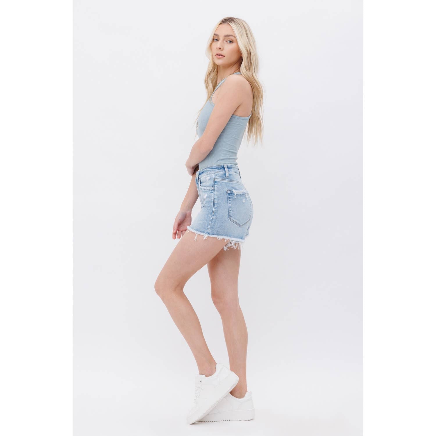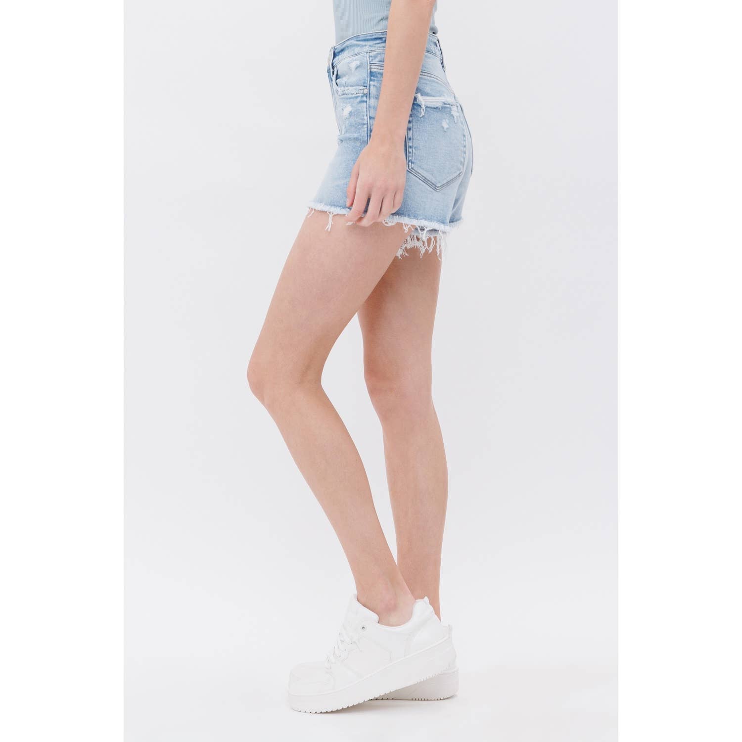 Mica High Rise Cutoffs: Light Wash