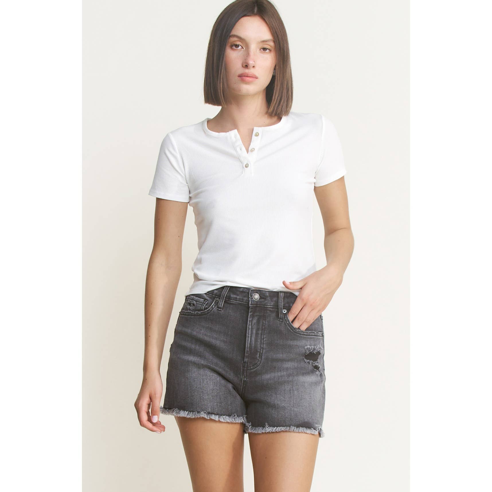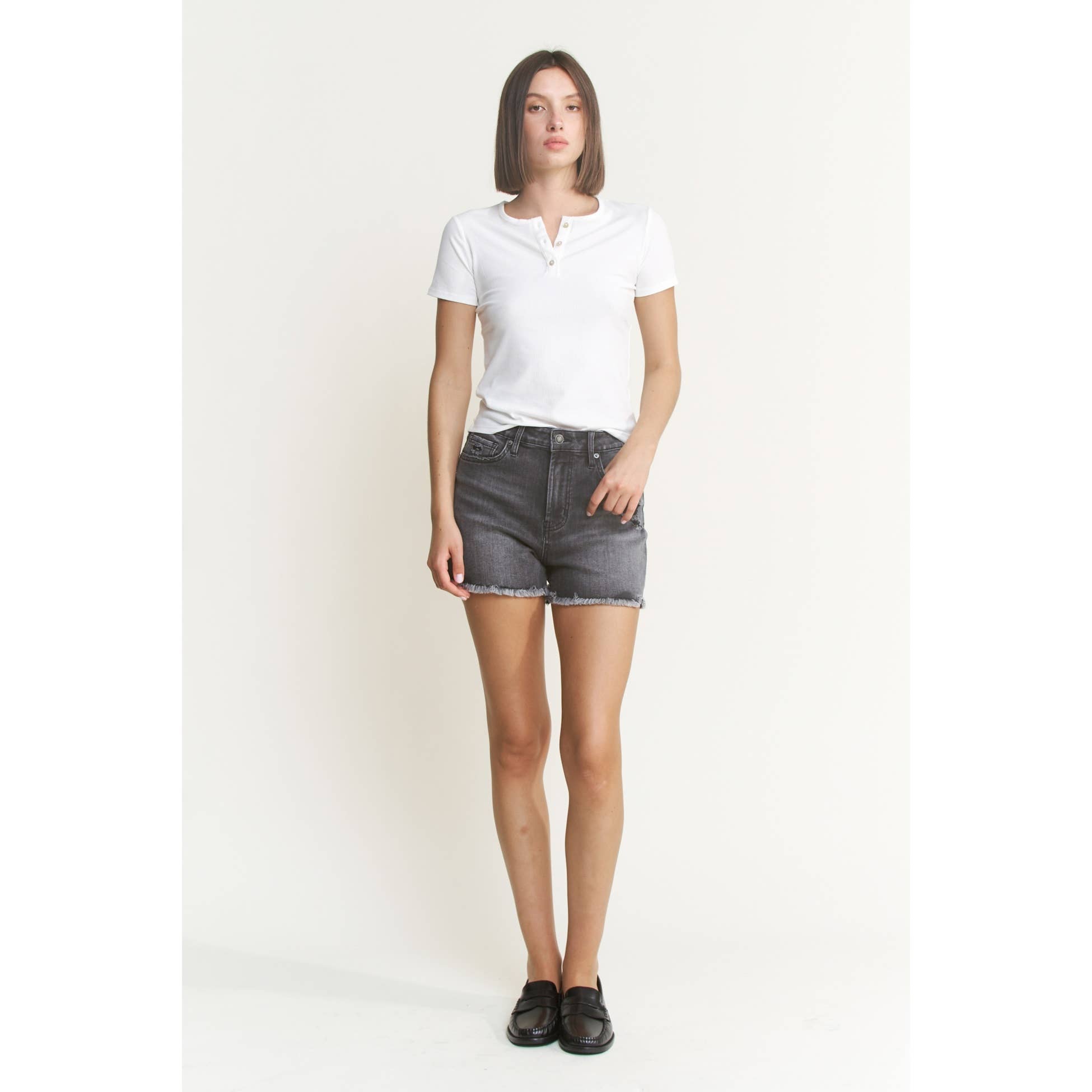 Mica Super High Rise Raw Hem Mid Length Shorts
