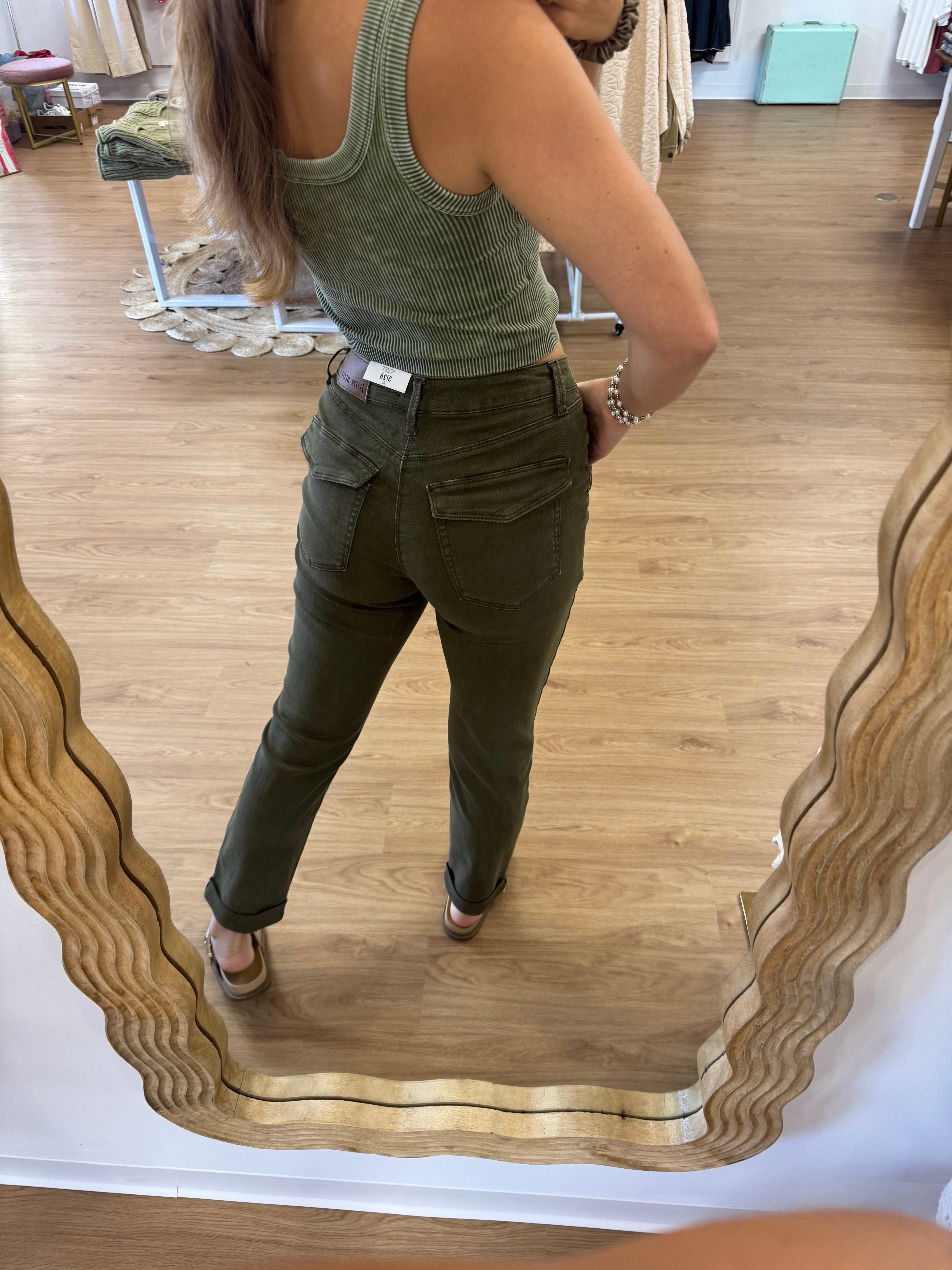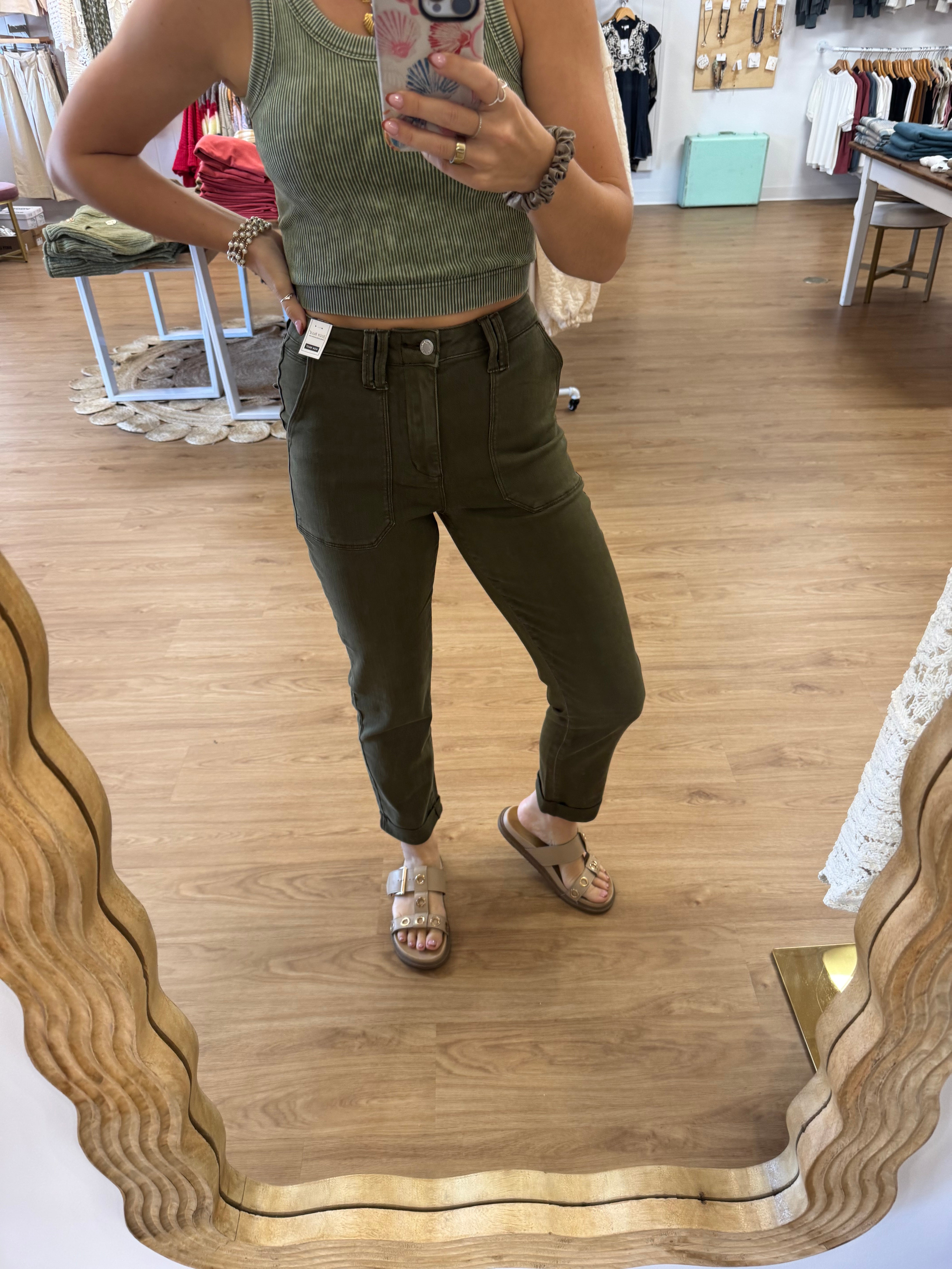 Judy Blue Work to Adventure Olive Jogger Pant