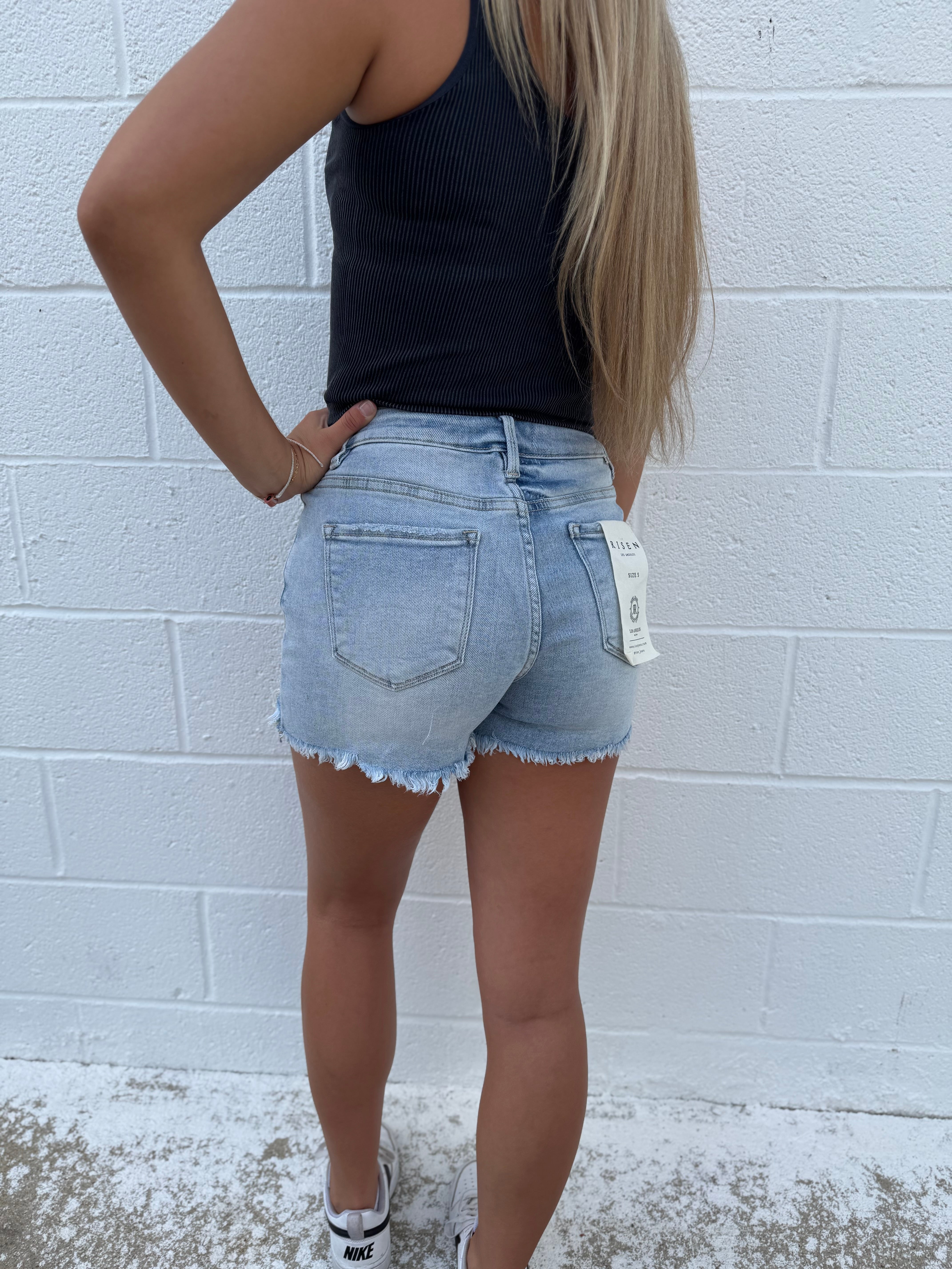 Risen Totally Light Washed Distressed Hem Stretch Shorts