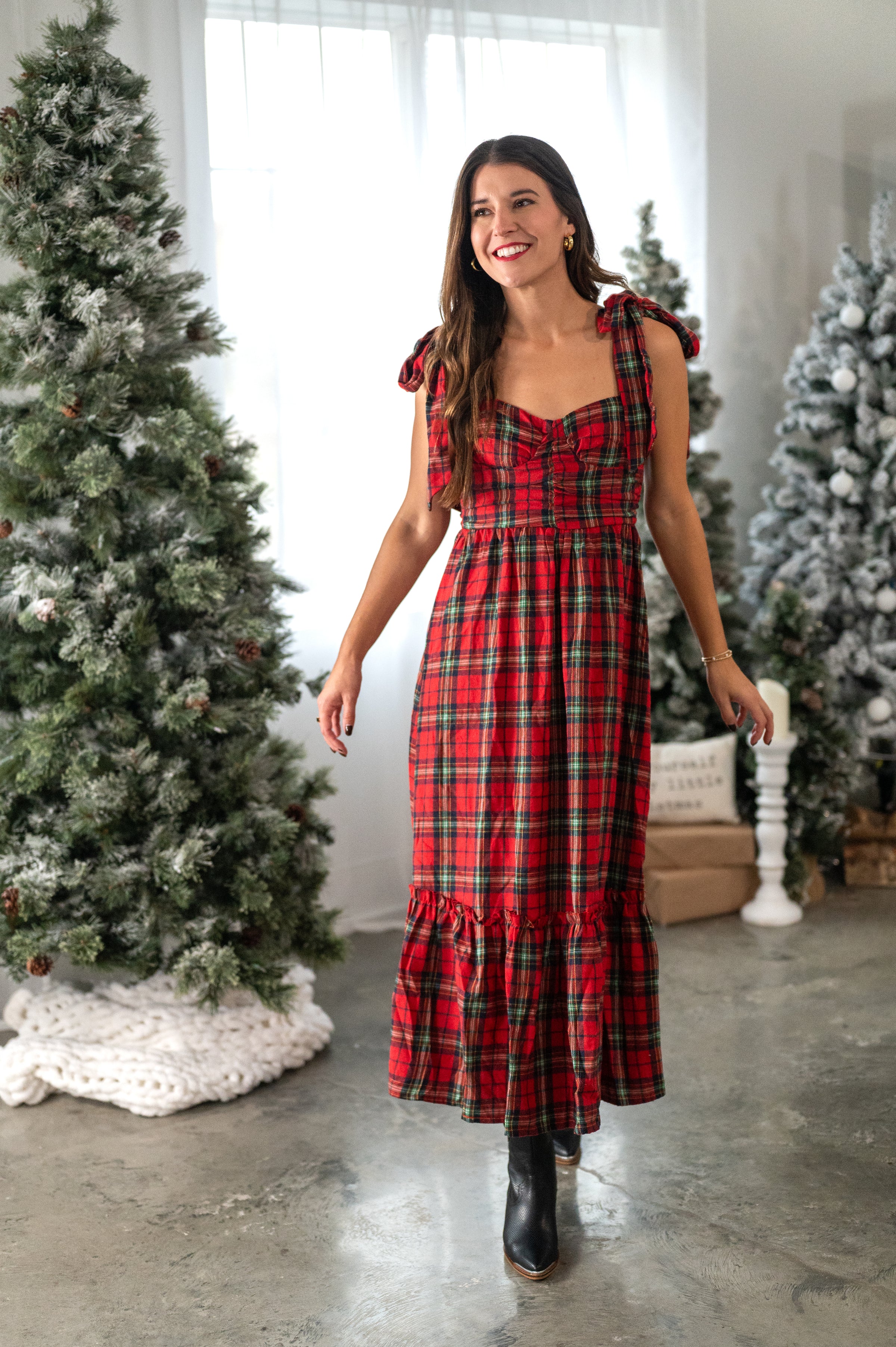 Serve holiday cheer in this festive checkered plaid midi dress that screams Christmas royalty. The classic red and green pattern pairs perfectly with your favorite boots or heels, while the midi length keeps things elegant yet fun. Whether you're hosting the ultimate holiday gathering or just spreading seasonal joy, this dress proves you're the hostess with the mostess. Comfortable enough for mingling, stylish enough for compliments—your guests will be talking about your look all season long.
