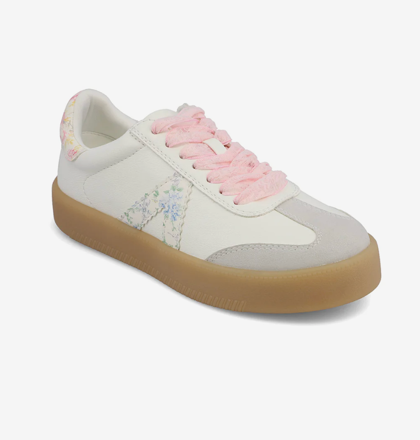 Where athleisure meets ultra-girly charm. The Axel sneaker is crafted from vegan leather and features delicate floral details and playful pink laces. Bonus points for the MIA Signature Footbed™ with a gum sole that will keep you comfy all day long.