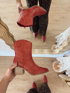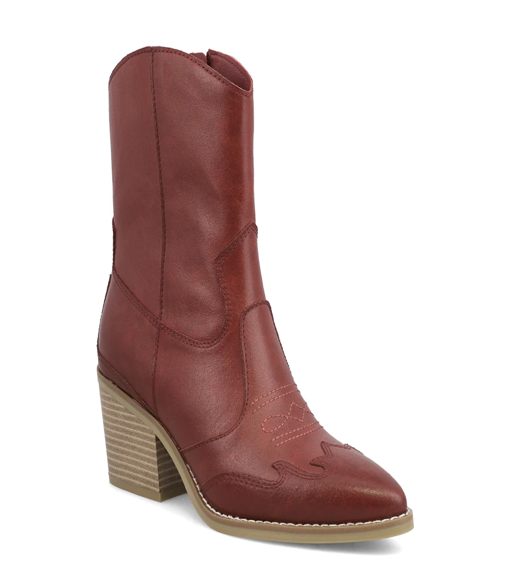 Clorinda brings the western charm—crafted from sleek, vegan leather and lifted by a 2.5-inch stacked heel that’s all about easy style. A side zipper makes for effortless on-and-off, finished on a pointed toe silhouette. She’s the kind of boot that dresses up your day without trying too hard, and keeps you comfy while doing it.