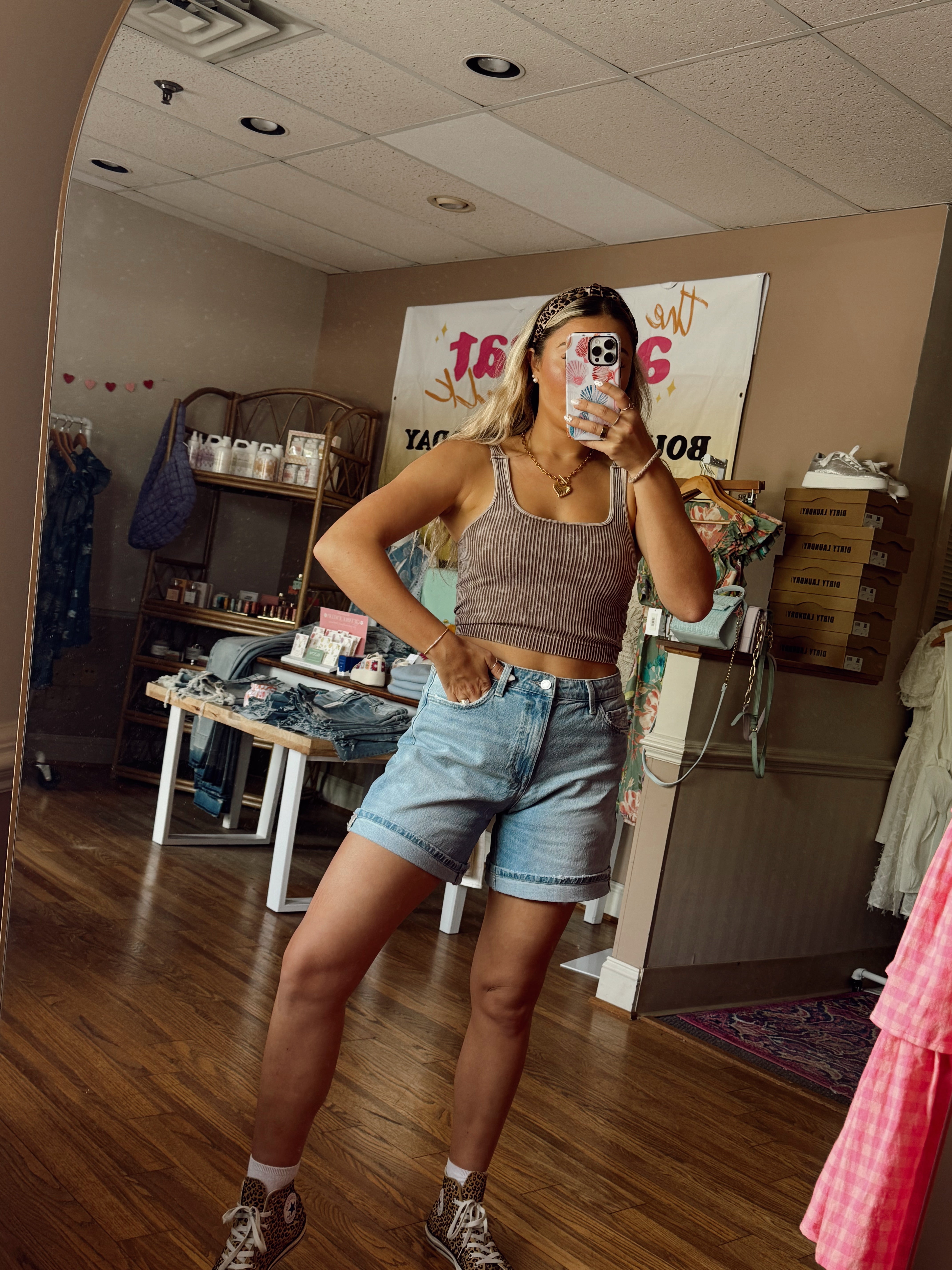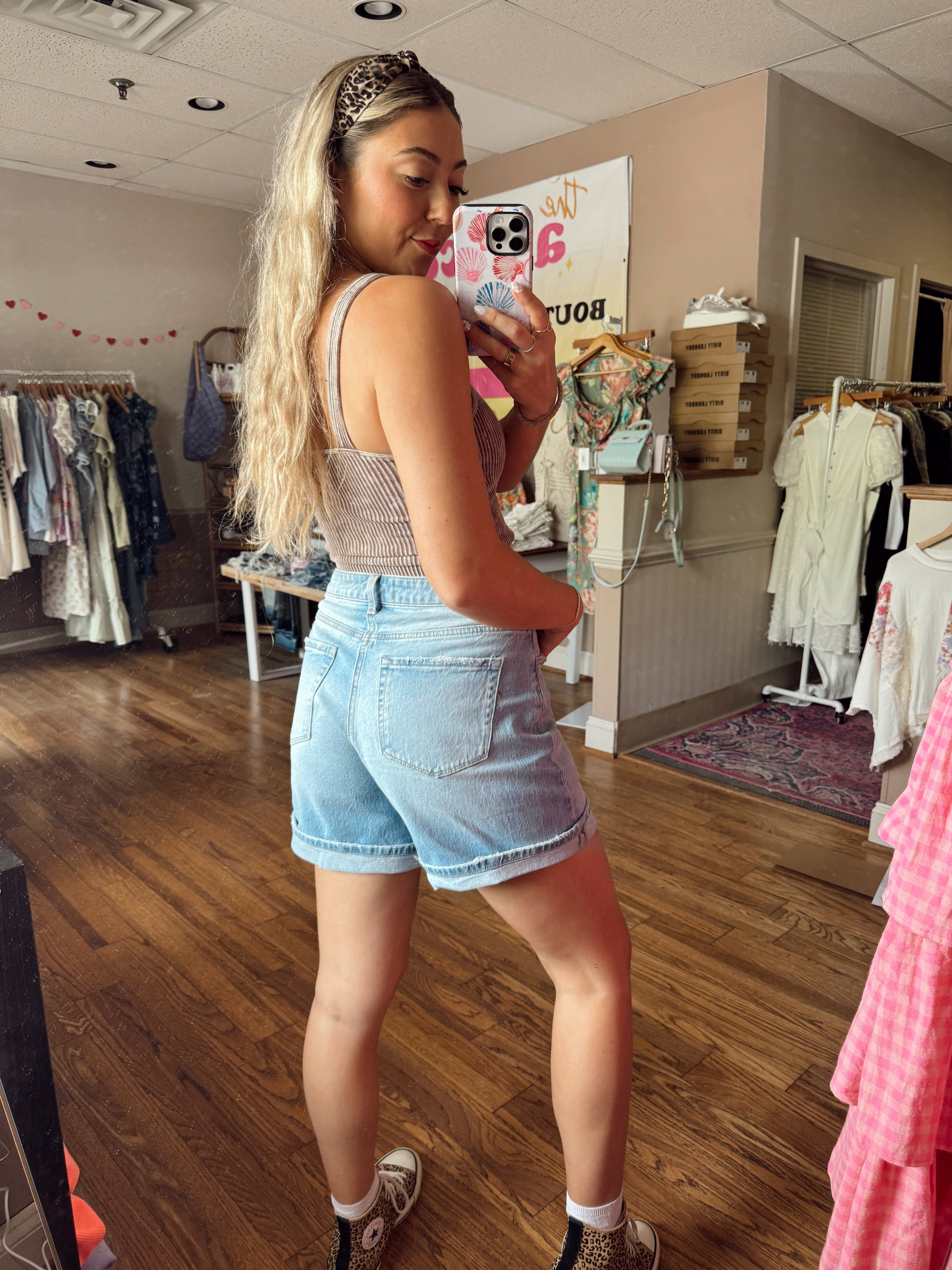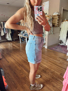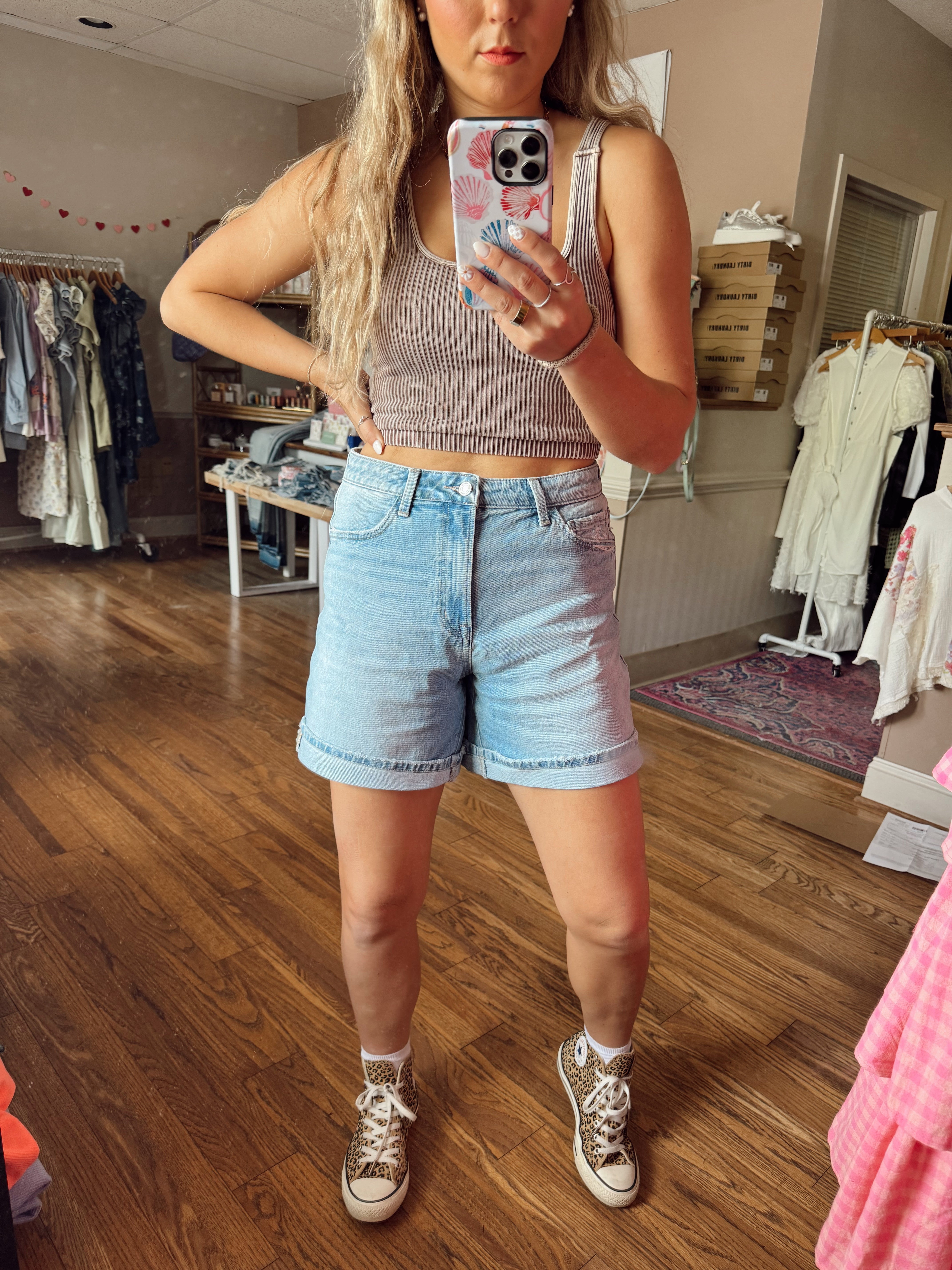 Experience vintage perfection with our Vervet Super High Rise Midi A-Line Shorts! These light wash shorts feature a flattering high rise and a fit and flare style that will accentuate your curves. The cuffed design and minimal distressing add a touch of playfulness to this timeless piece. Don't miss out on this must-have addition to your wardrobe!