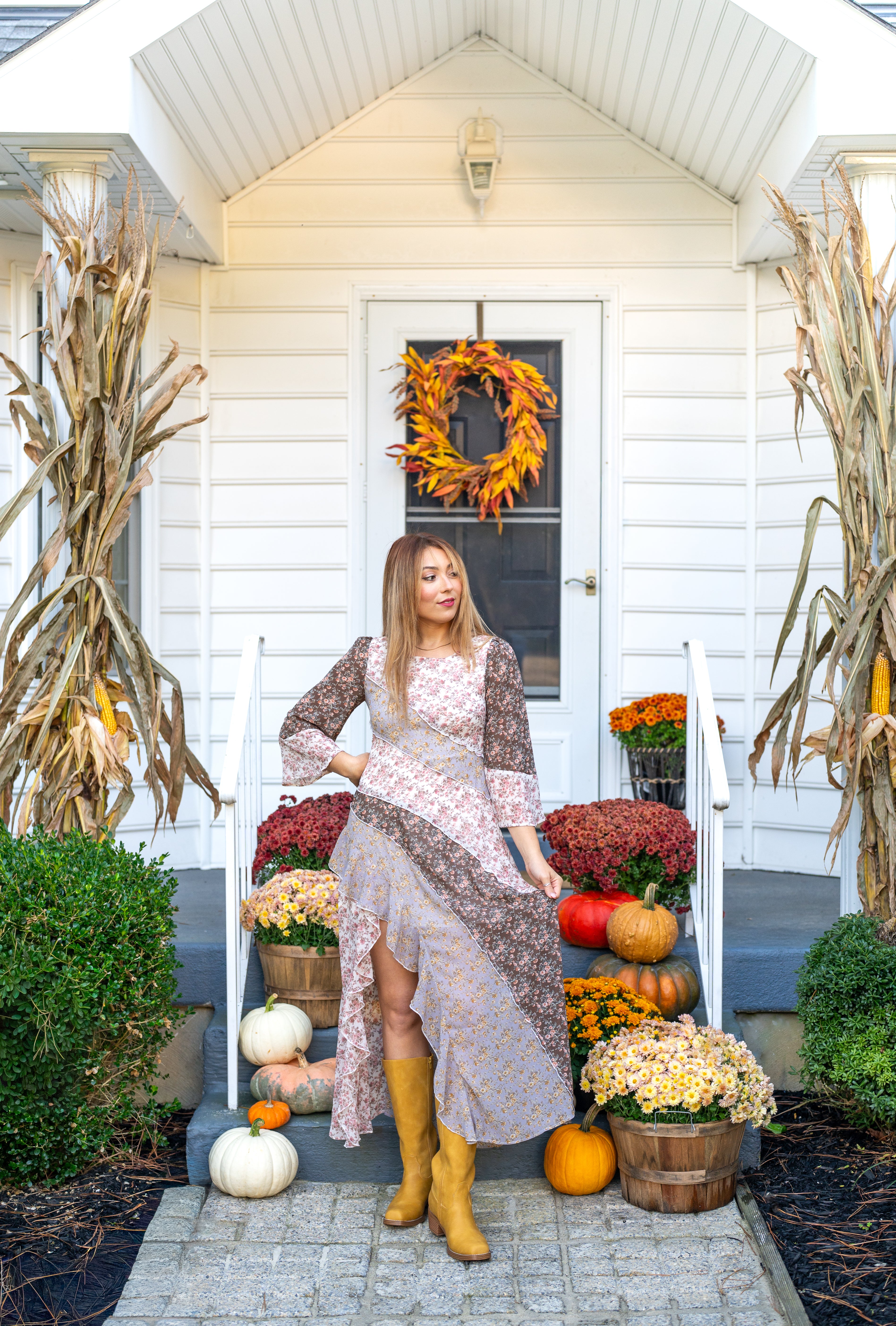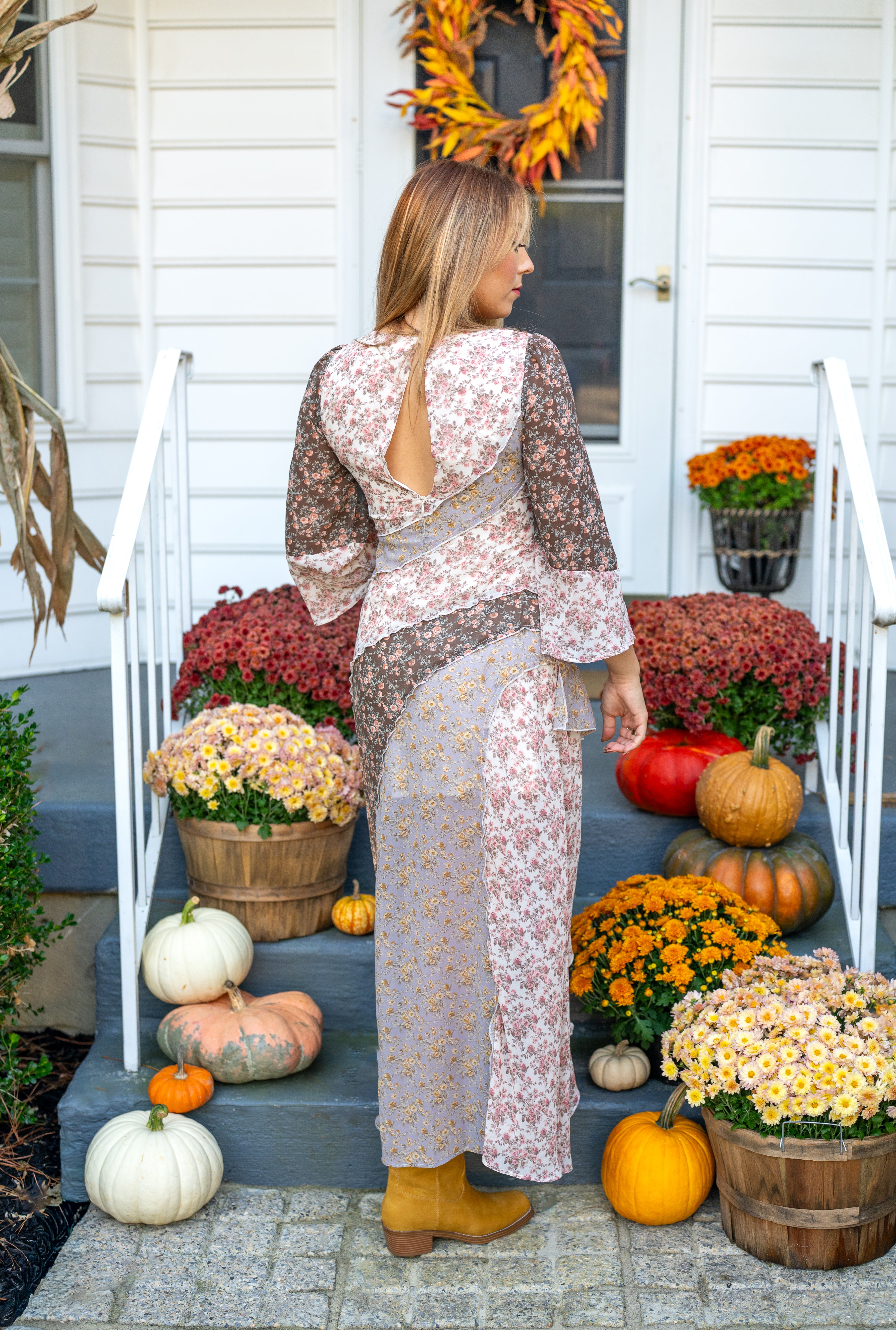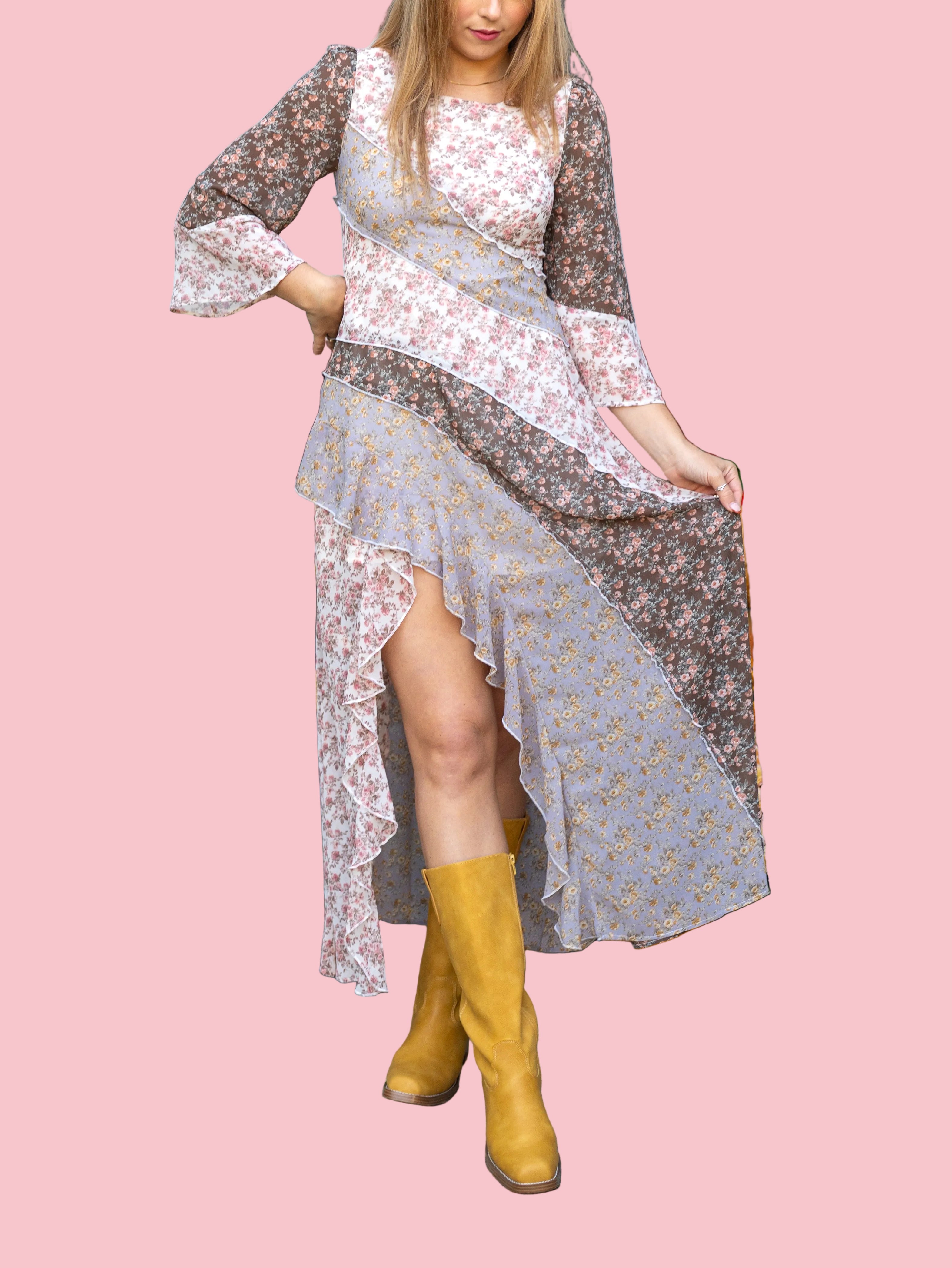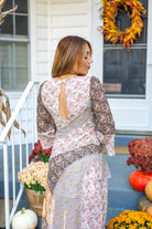 The Meadow Muse Mixed-Print Maxi Dress delights with its vintage multi floral print and playful ruffle slit detail. Featuring long sleeves and a cute silhouette, this dress is designed to brighten your wardrobe and transition effortlessly through every season.