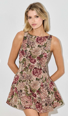 Make a statement in this utterly charming sleeveless mini dress in a captivating vintage tapestry print. The subtle basque waist gently defines your figure while the flared skirt creates a fun, twirly silhouette that's pure joy to wear. Finished with a practical back zipper, this cute number is your new favorite piece for looking effortlessly put-together with personality to spare.