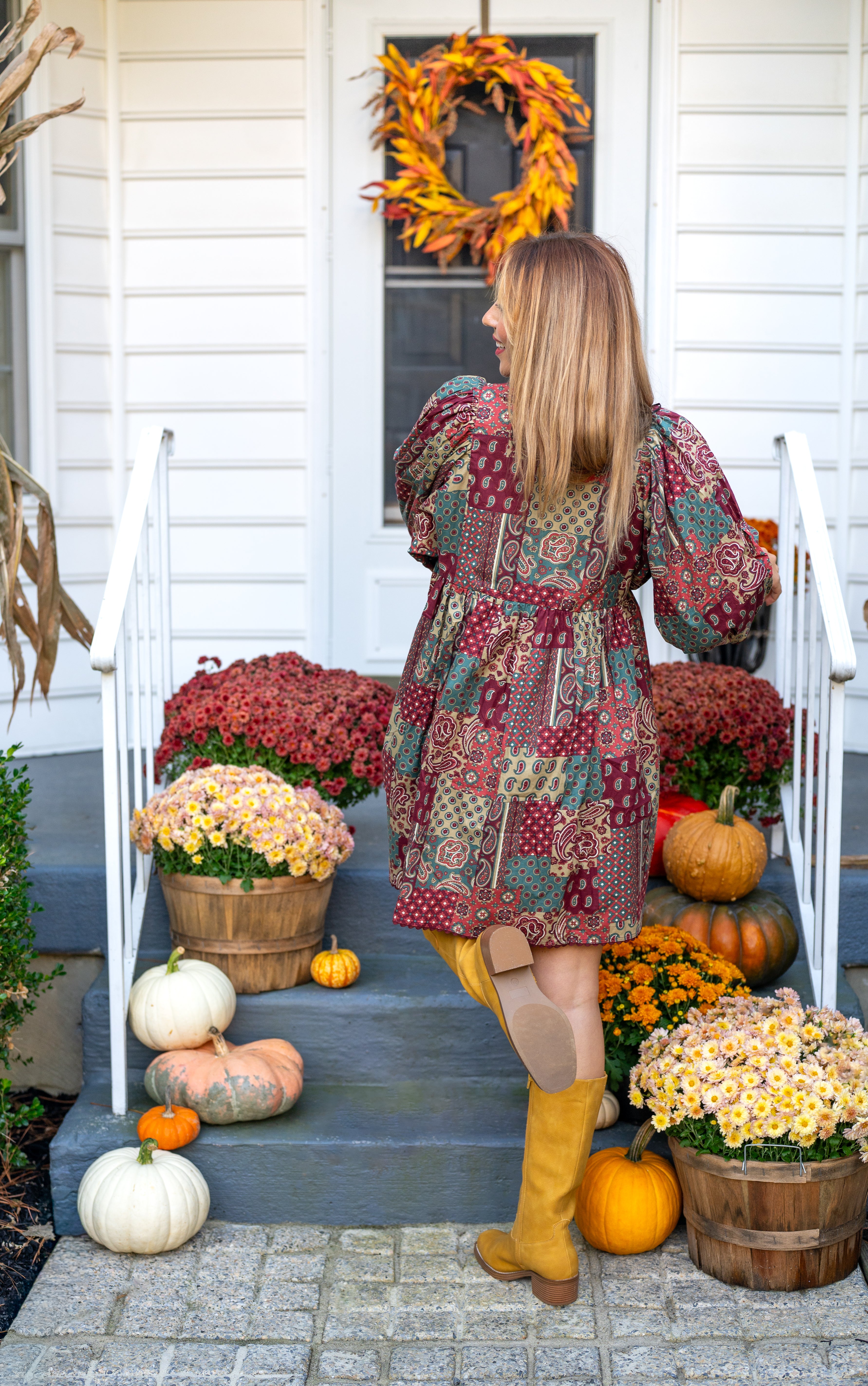 This playful Paisley Puff Sleeve Mini Dress brings a charming burgundy mix to your look. Featuring quarter-length puff sleeves and delicate ric-rac trim, its flowy silhouette offers a cute, breezy feel perfect for any occasion. Embrace vibrant style with effortless comfort.