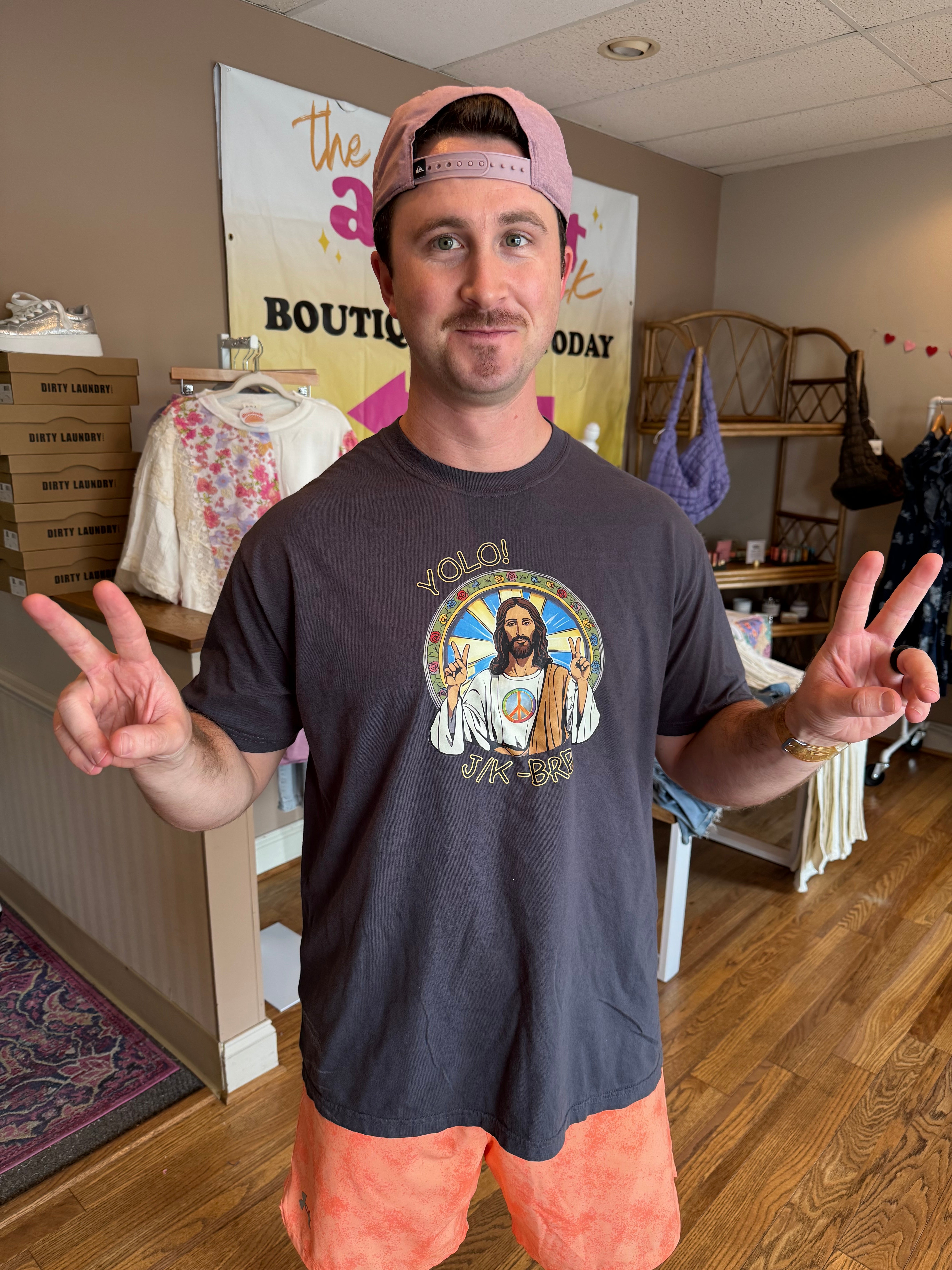 Get ready to rock your faith with the YOLO Jesus Tee! Made with 100% cotton and a unisex fit, this comfort colors charcoal tee features a playful YOLO Jesus graphic that will make you stand out in any crowd. Don't miss out on this fun and quirky statement piece!