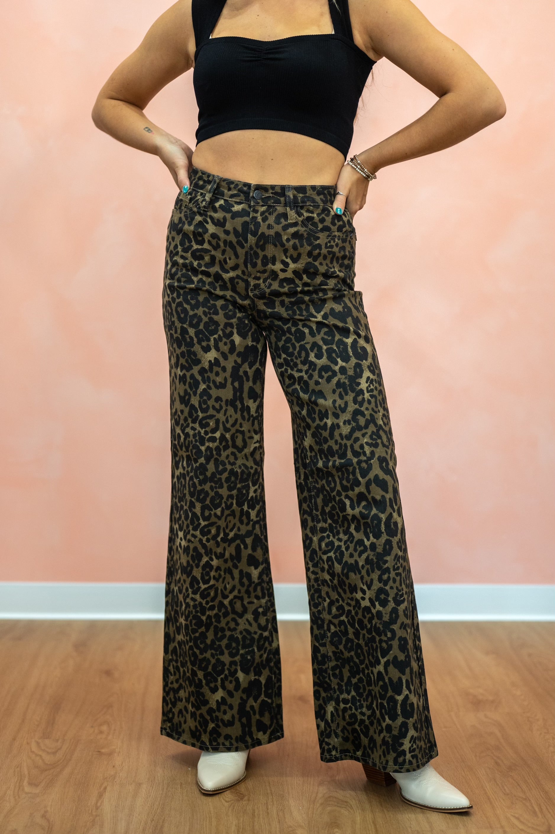 Step out with confidence in the Judy Blue Retro High Rise Wide Leg Jean in bold leopard print. These high-waisted pants blend retro vibes with playful edge, offering all-day comfort and standout style. Whether you're lounging or making a statement, their wide-leg silhouette lets you embrace your wild side effortlessly. Pair with the matching jacket to take your look from work to weekend with ease and flair.