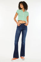KAN CAN Dark Wash Mid Rise Flare Jean: Petite