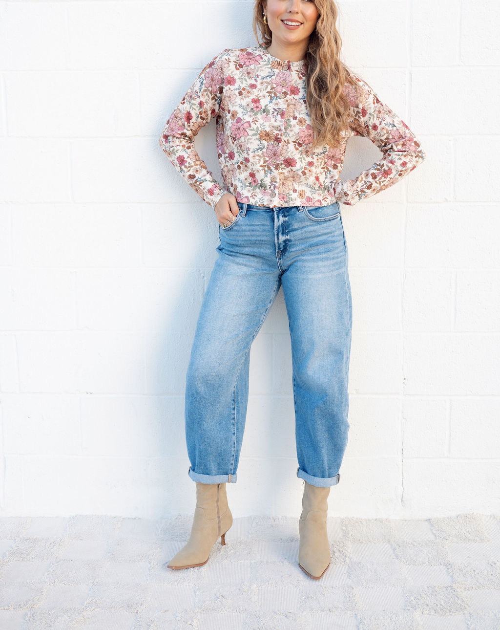 These RISEN High Rise Cropped Stretch Barrel Jeans bring the perfect charm to your denim collection. Featuring a flattering high-rise fit and a fun barrel silhouette, you can wear them cuffed or uncuffed to match your mood. The stretch fabric ensures comfort without sacrificing style, while the medium wash gives a classic, easygoing vibe. Perfect for adding a cute twist to your everyday look!
