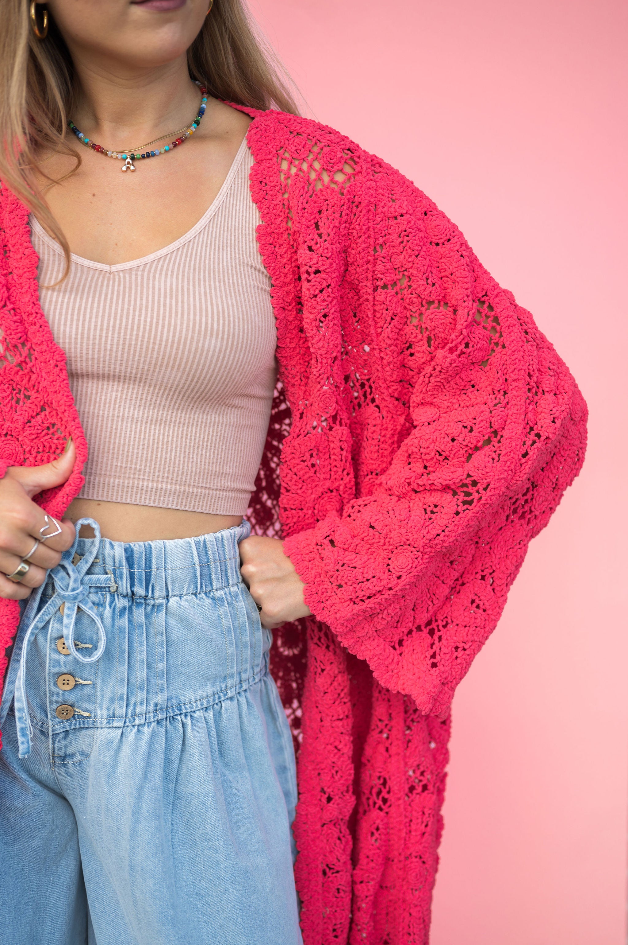 Wrap yourself in effortless boho vibes with the POL Sunset Bloom Crochet Cardigan. Its duster length and intricate crochet design make it the perfect layering piece to add texture and flow to any outfit. Whether you’re strolling beachside or embracing a laid-back city look, this playful cardigan brings warmth and style in one charming package.