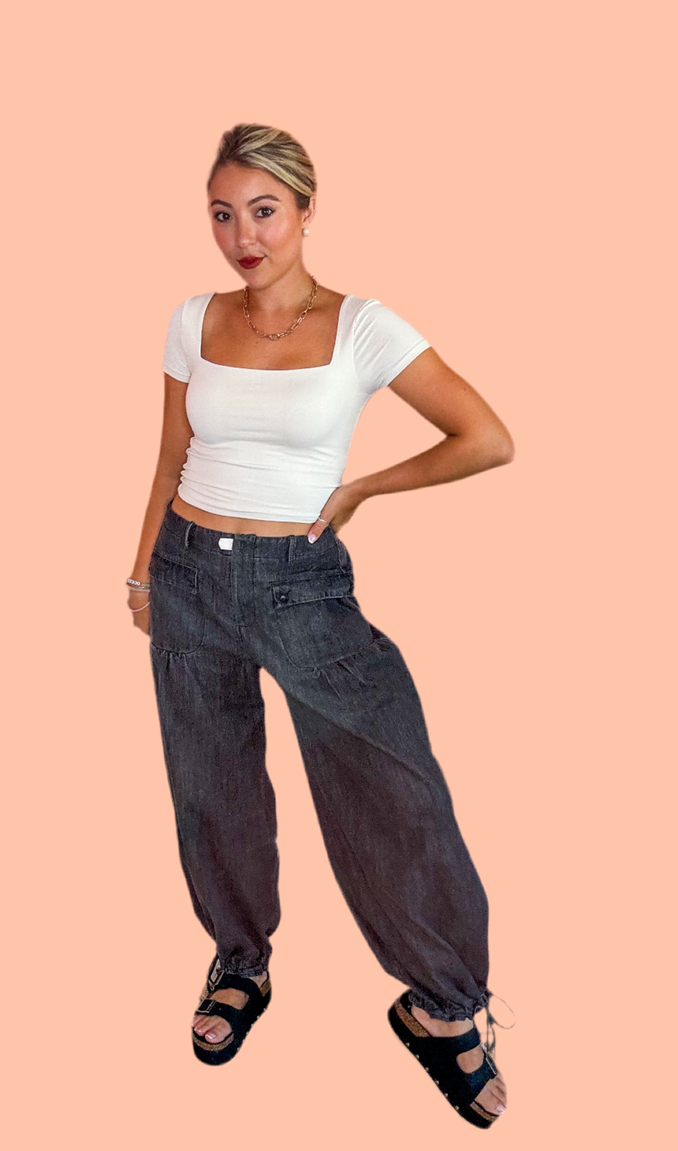 Get ready to make a statement in our Carrie 2.0 Dark Wash Wide Leg Jeans. These versatile denim pants feature a mid-high waist for a flattering fit, plus a wide opening to show off your favorite shoes. Don't forget to cinch the adjustable balloon bottom for extra flair. Made from 100% cotton with a 32" inseam (measured on S), wear these jeans wide leg or cinched for maximum style!