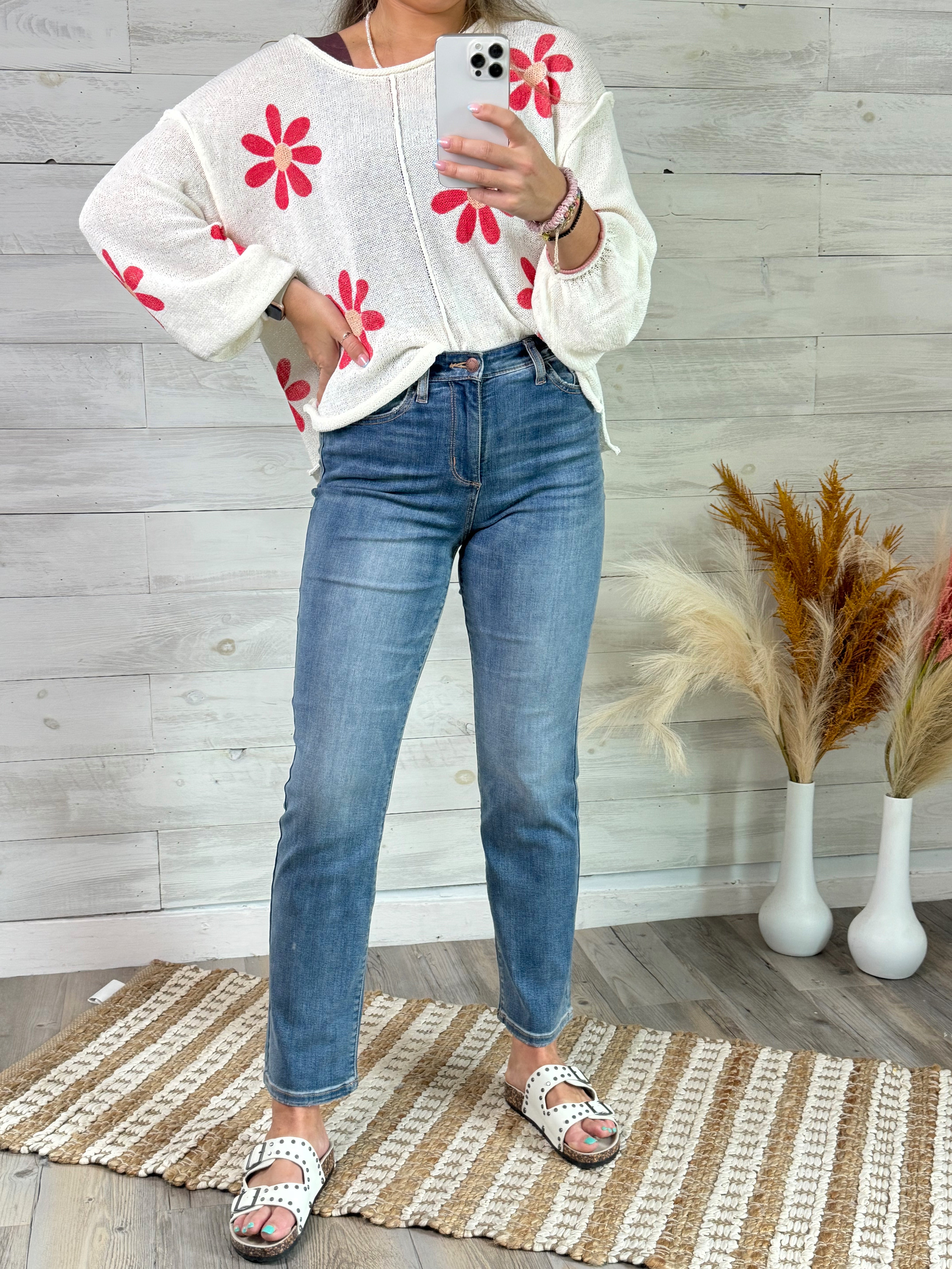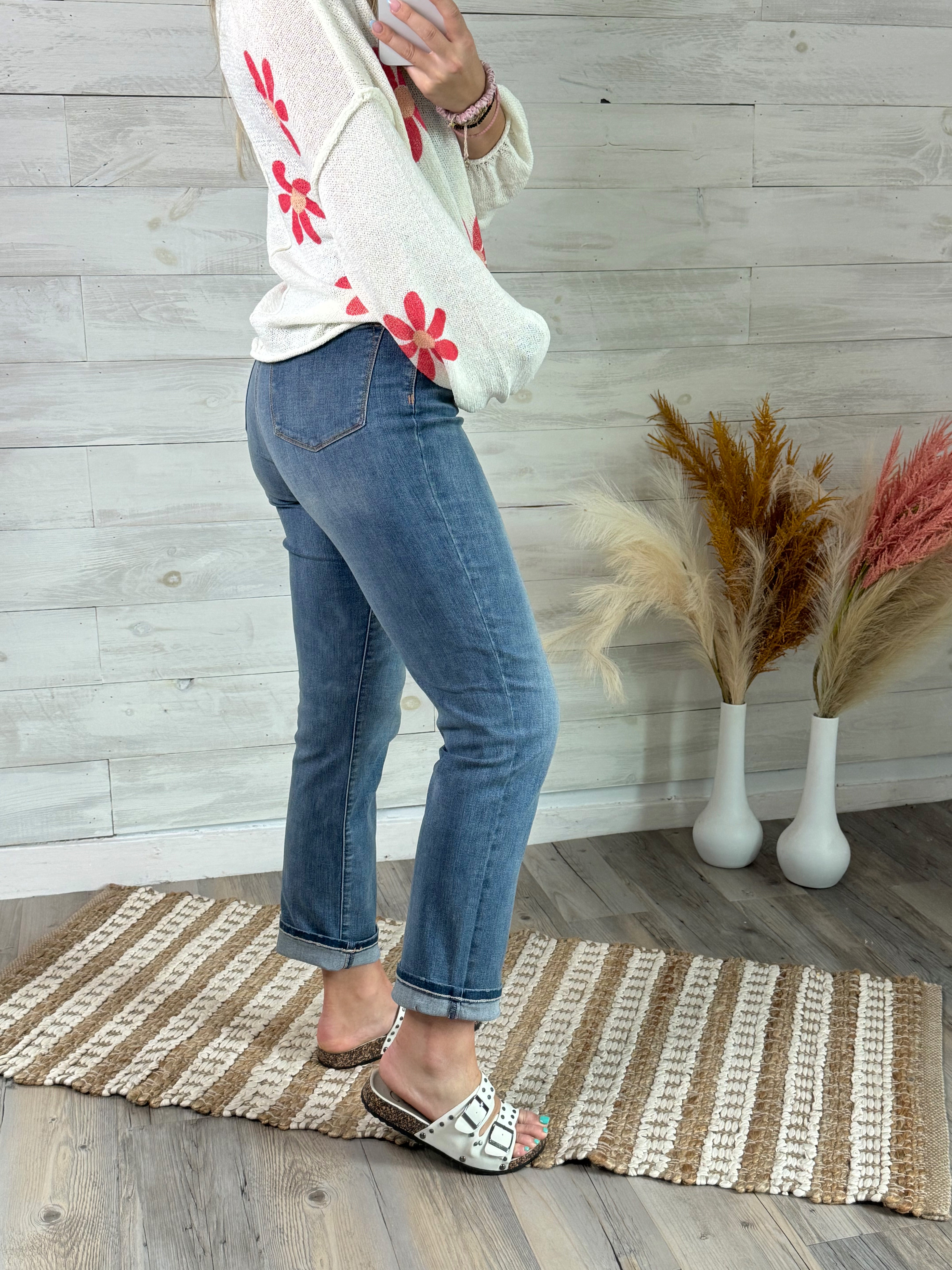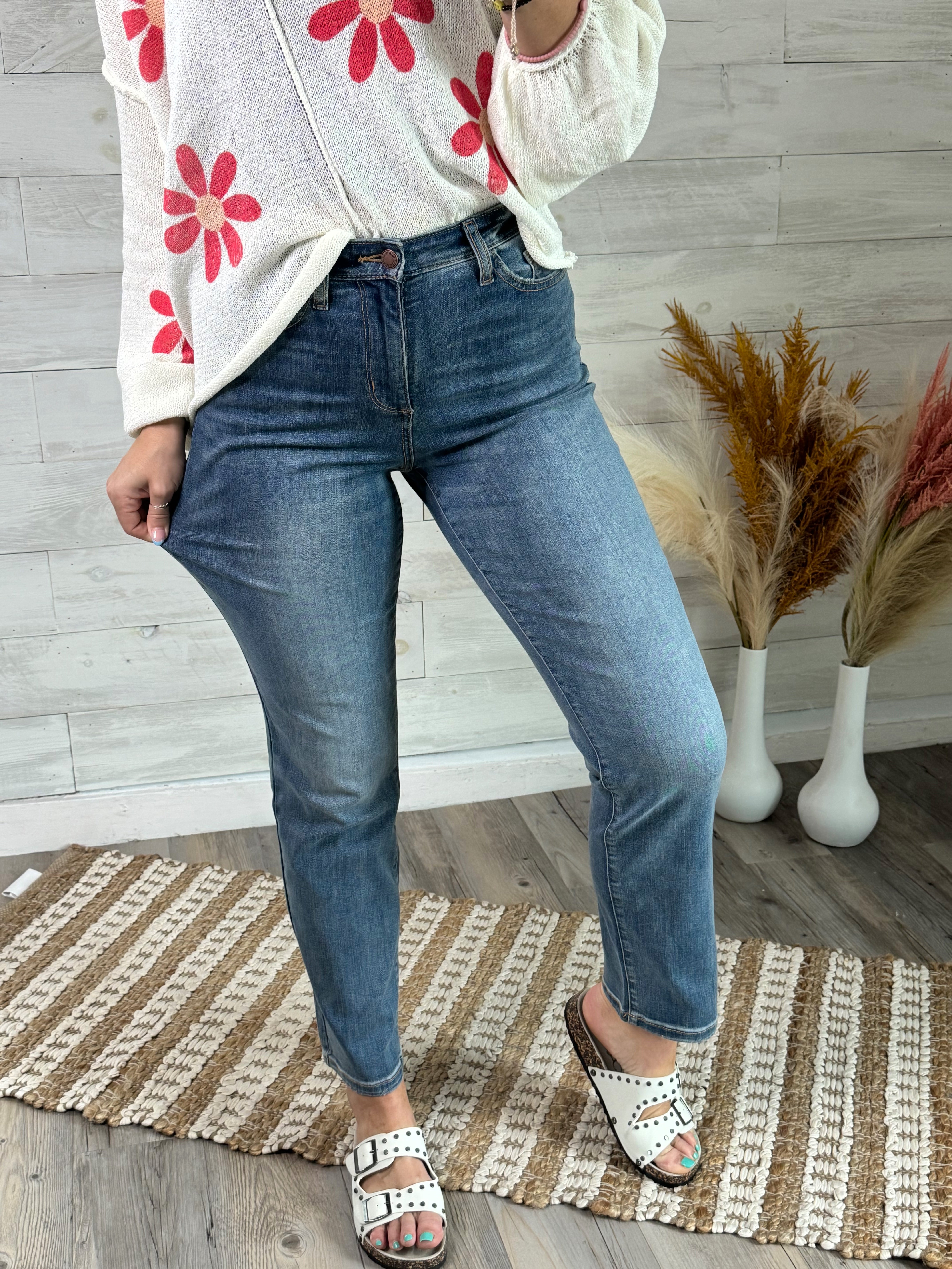Get ready to elevate your denim game with our Judy Blue Oh She's Perfect jeans! With a high waist and straight fit throughout, these jeans offer both comfort and style. The stretchy denim and medium wash add to the perfect fit, while the absence of distressing and light graining give a sleek finish. And they're just right for all your favorite shoes!