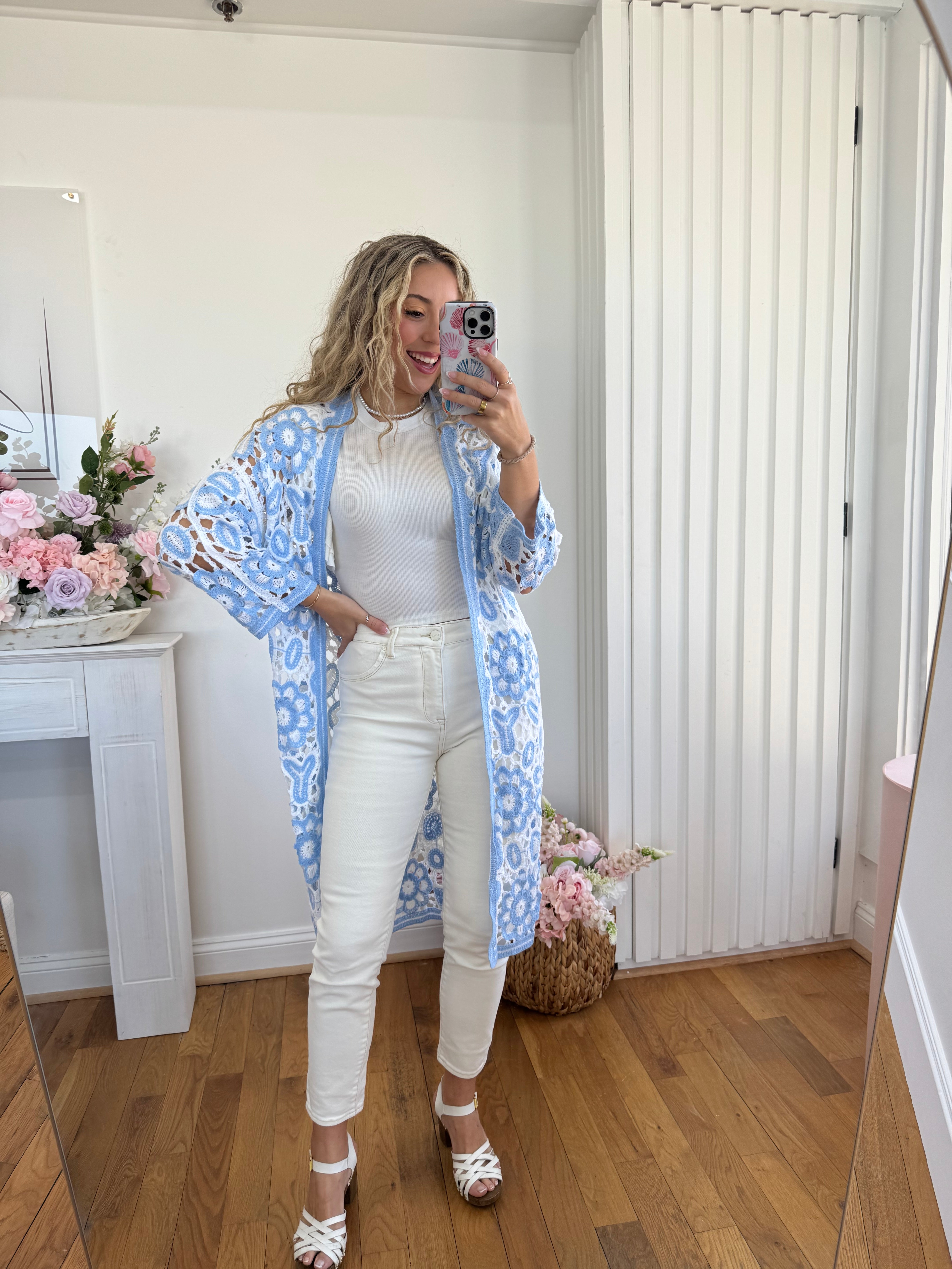 Ally is 5'8", a women's 6 and wearing a 5/27. Kinley is 5'9" a 10/12 in jeans and is wearing an 11/30.