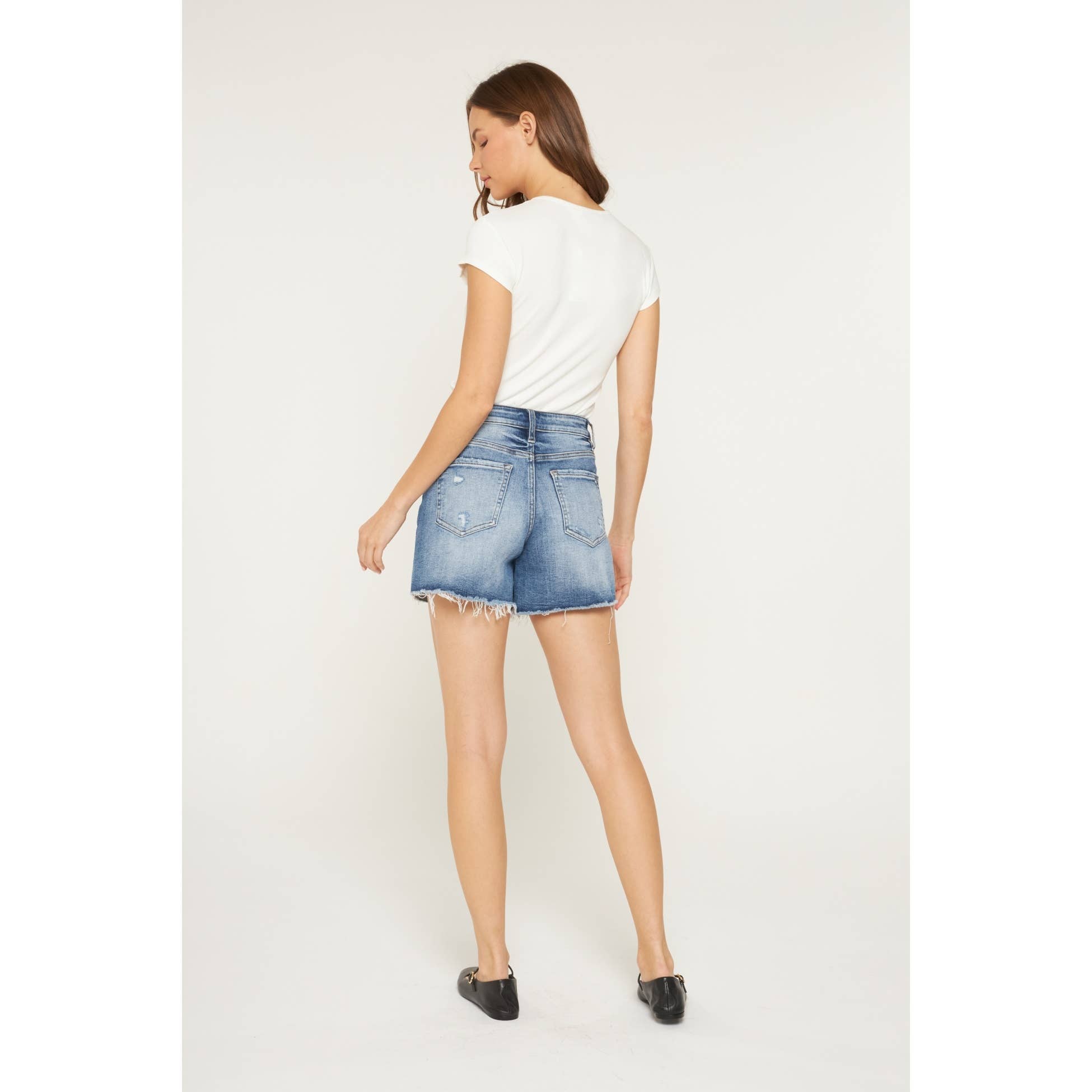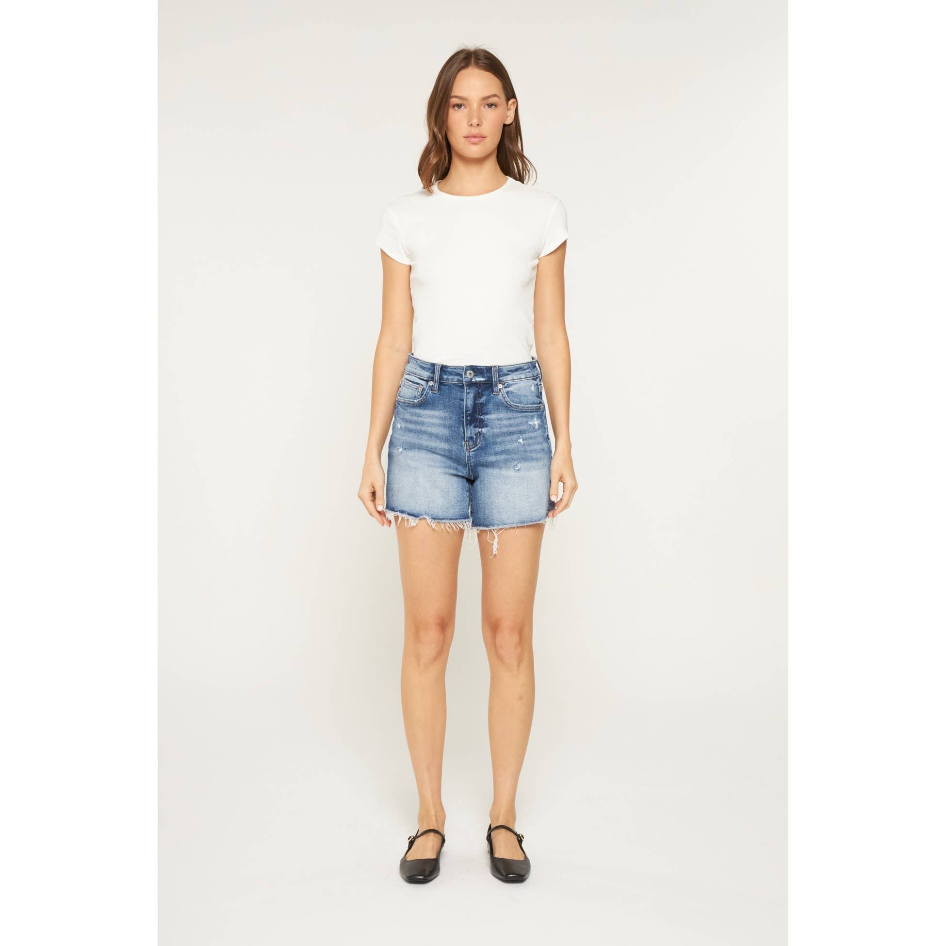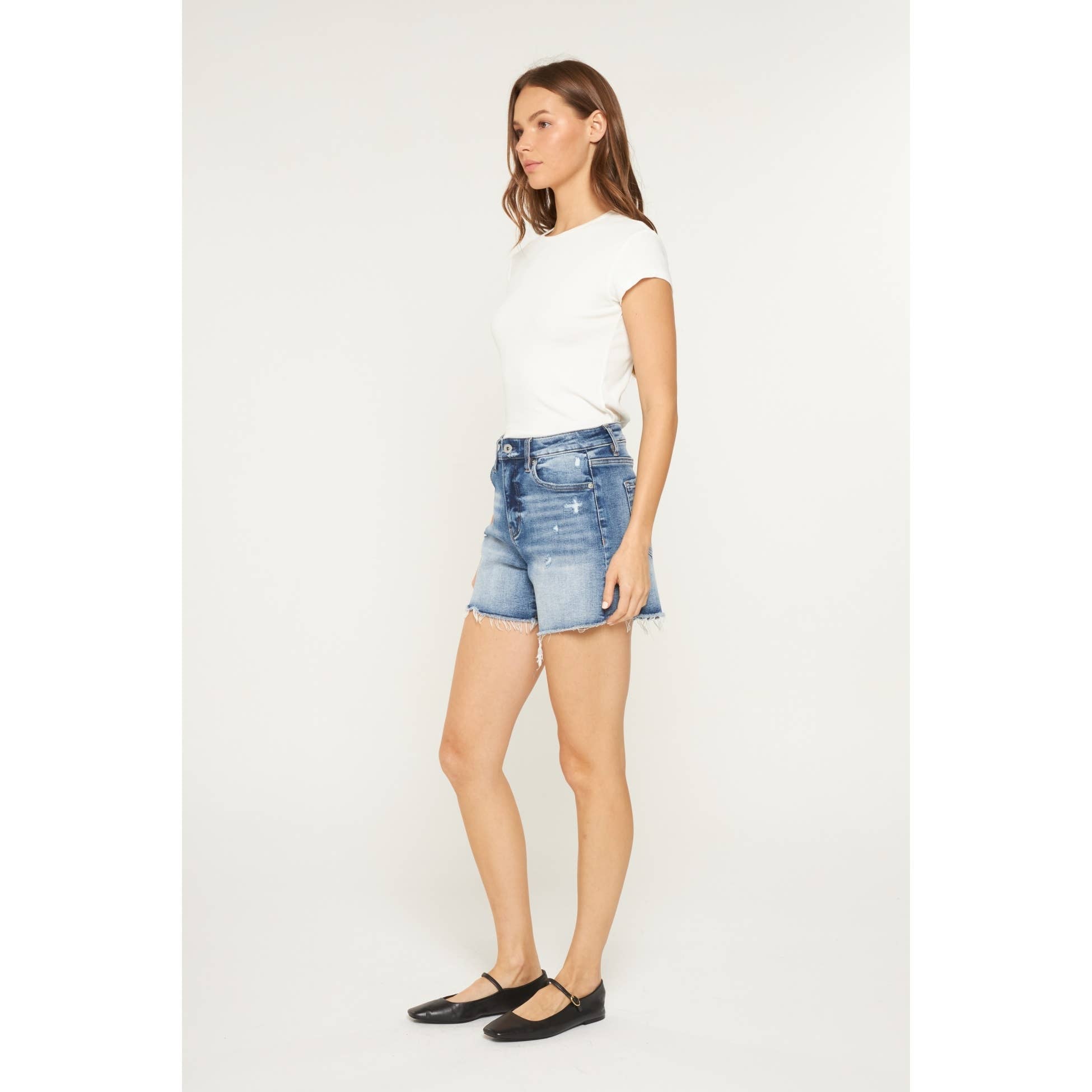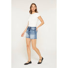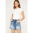 Mica Super High Rise Raw Hem Mid Length Shorts