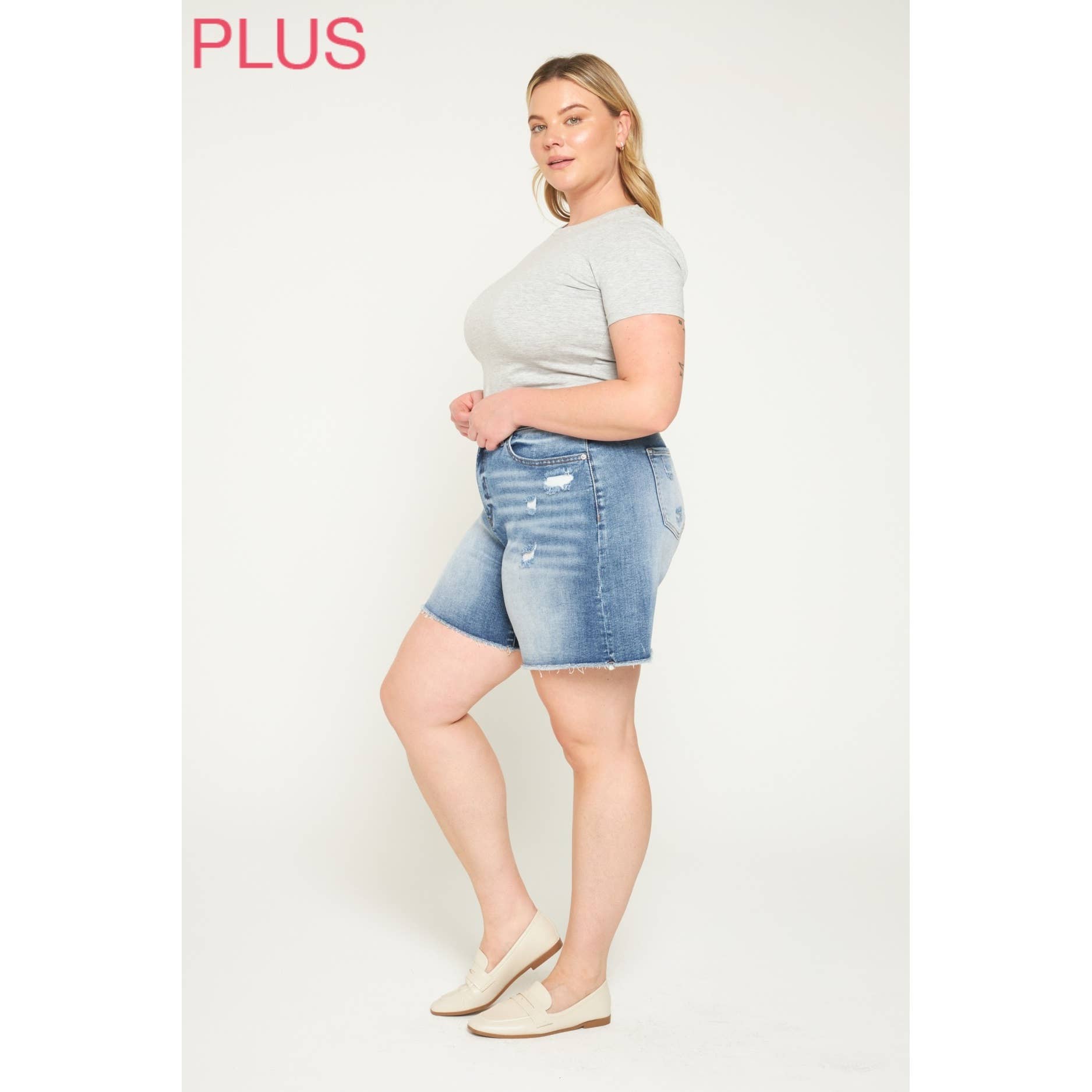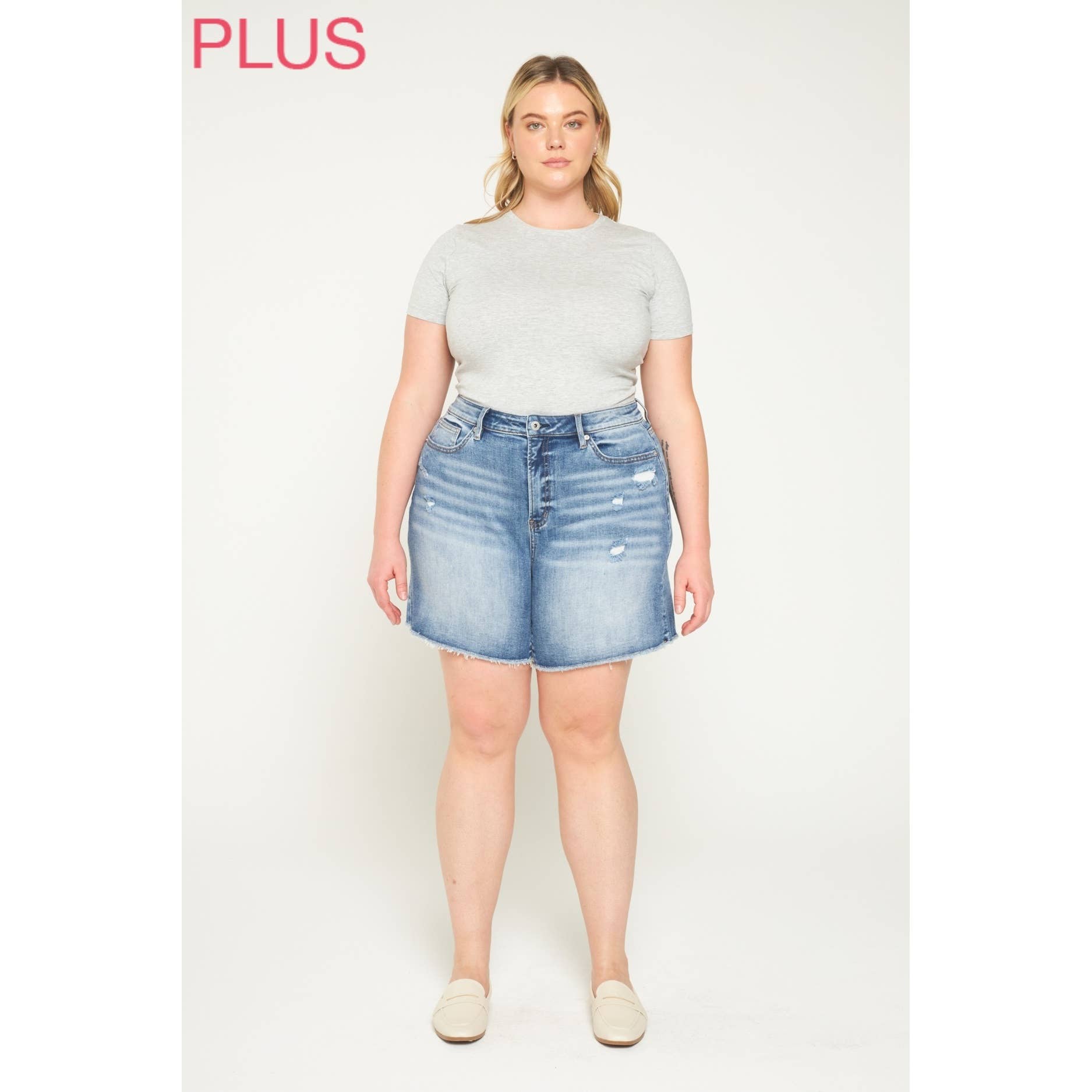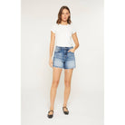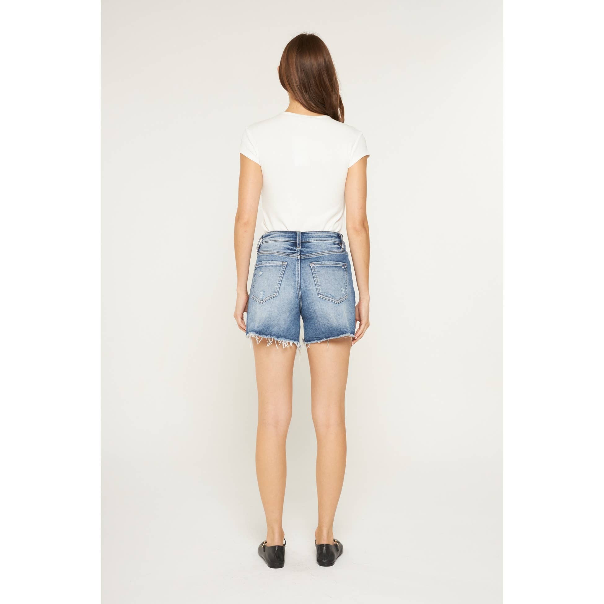 Mica Super High Rise Raw Hem Mid Length Shorts