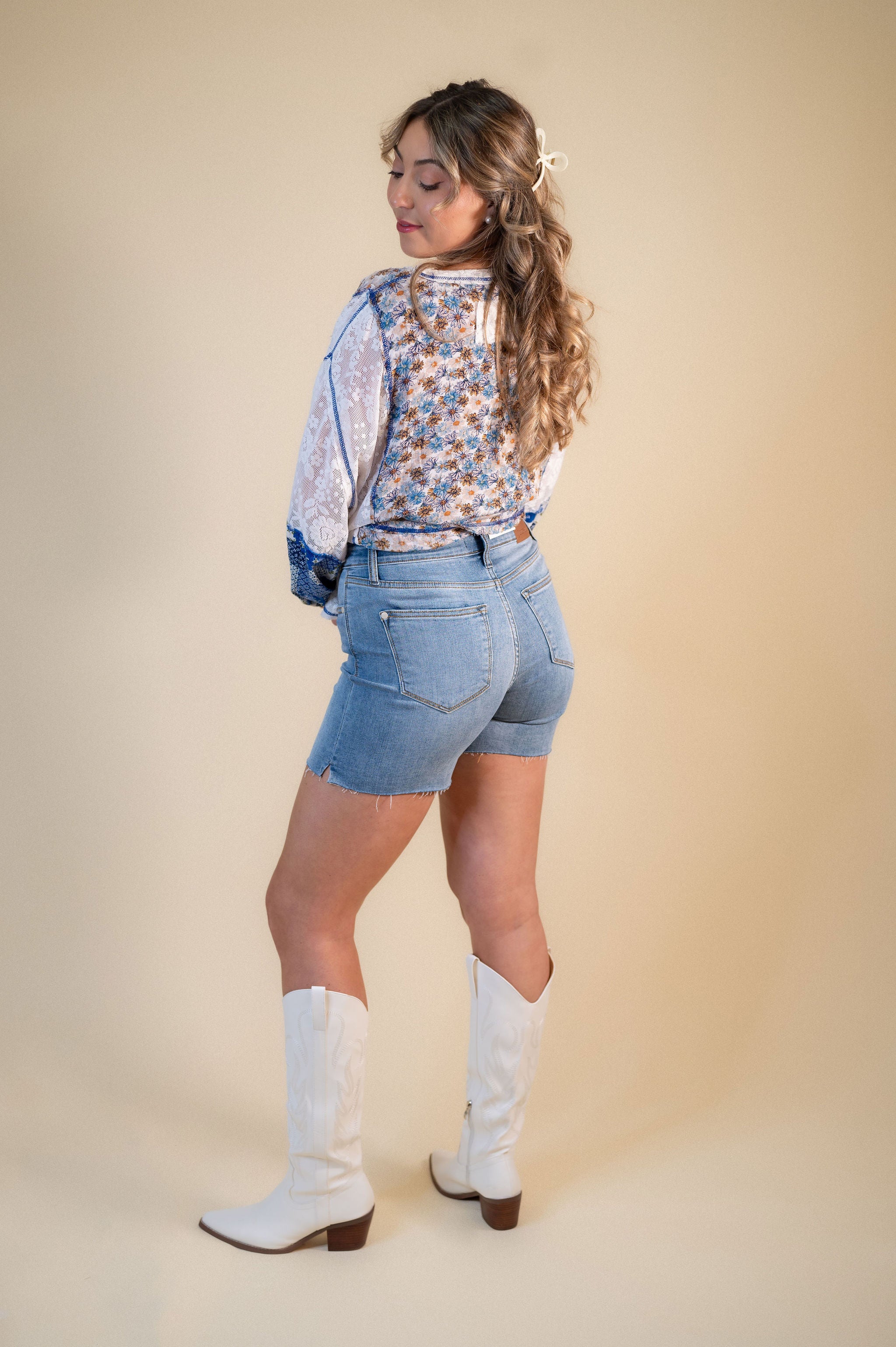 Risen Haley High Waisted Slit Cutoff Shorts
