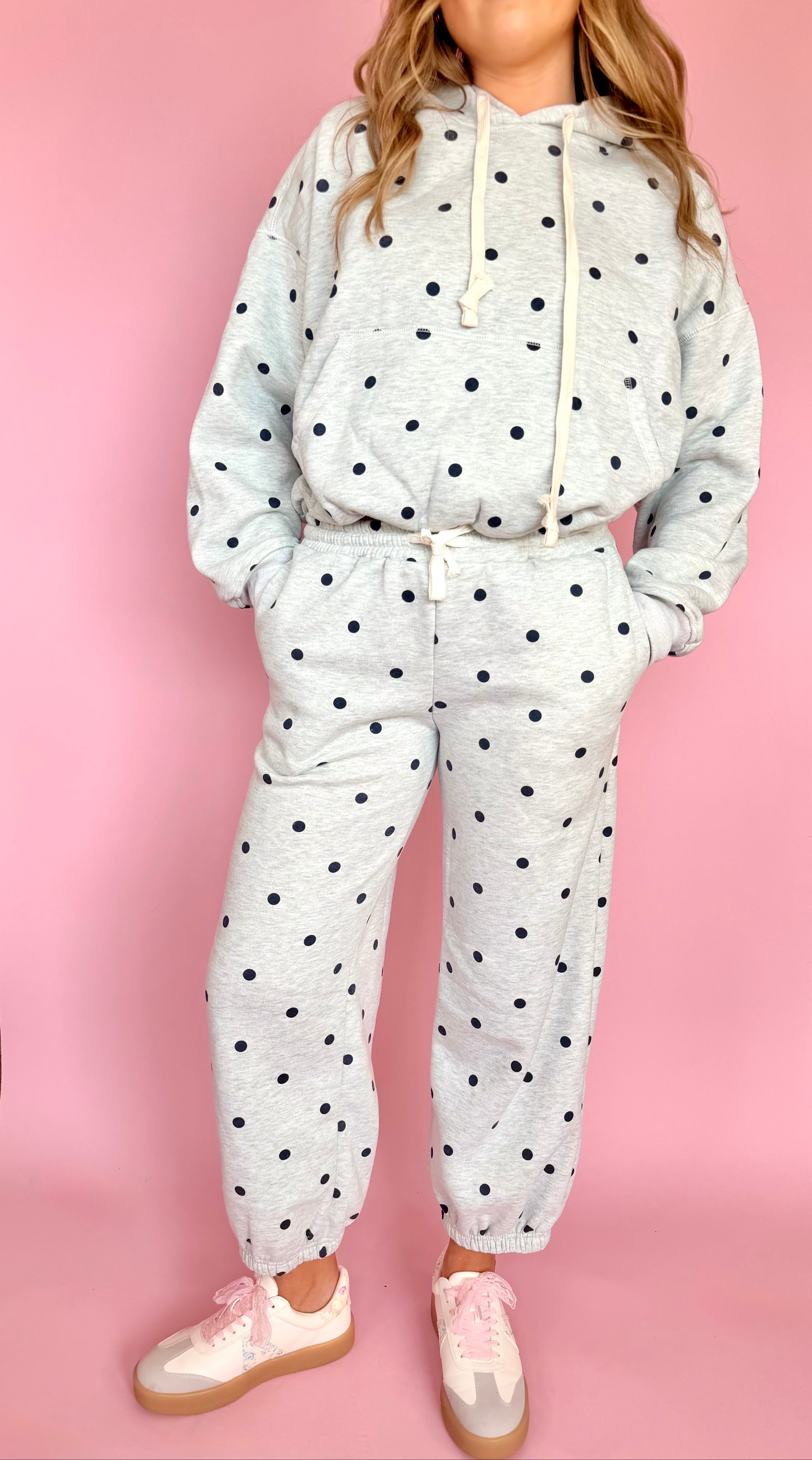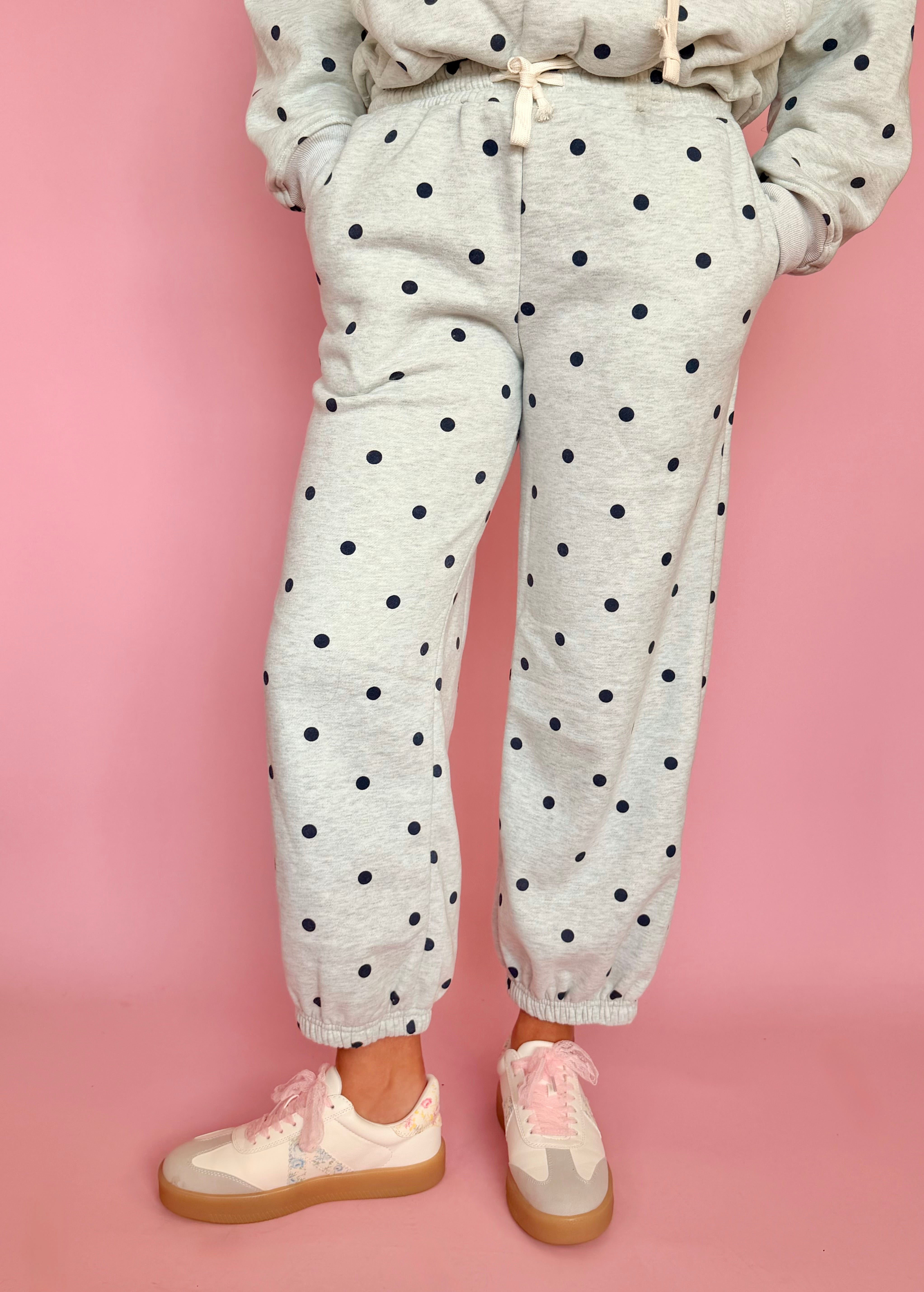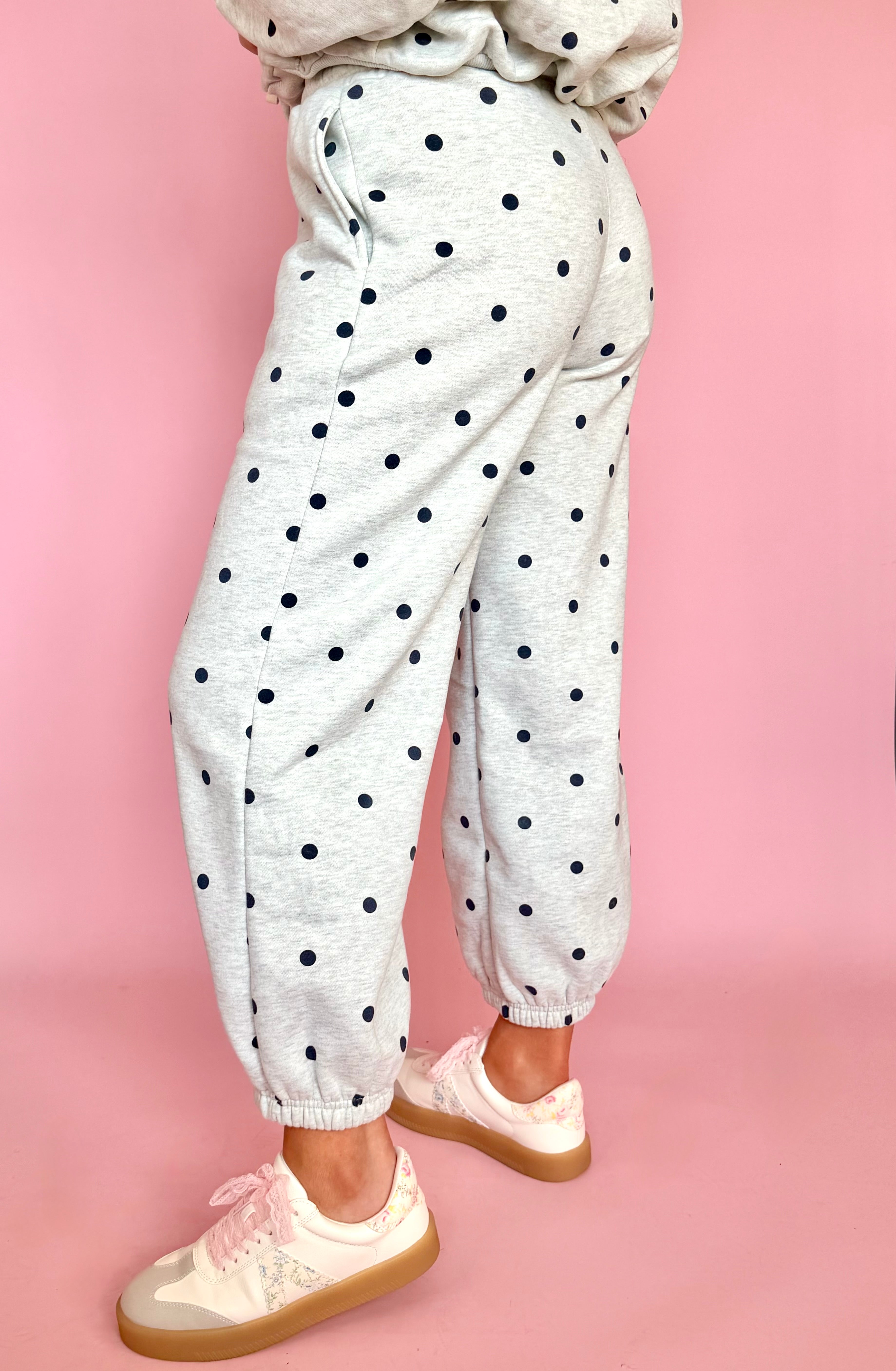 Printed Bubble Hem Polka Dot Knit Sweatpants