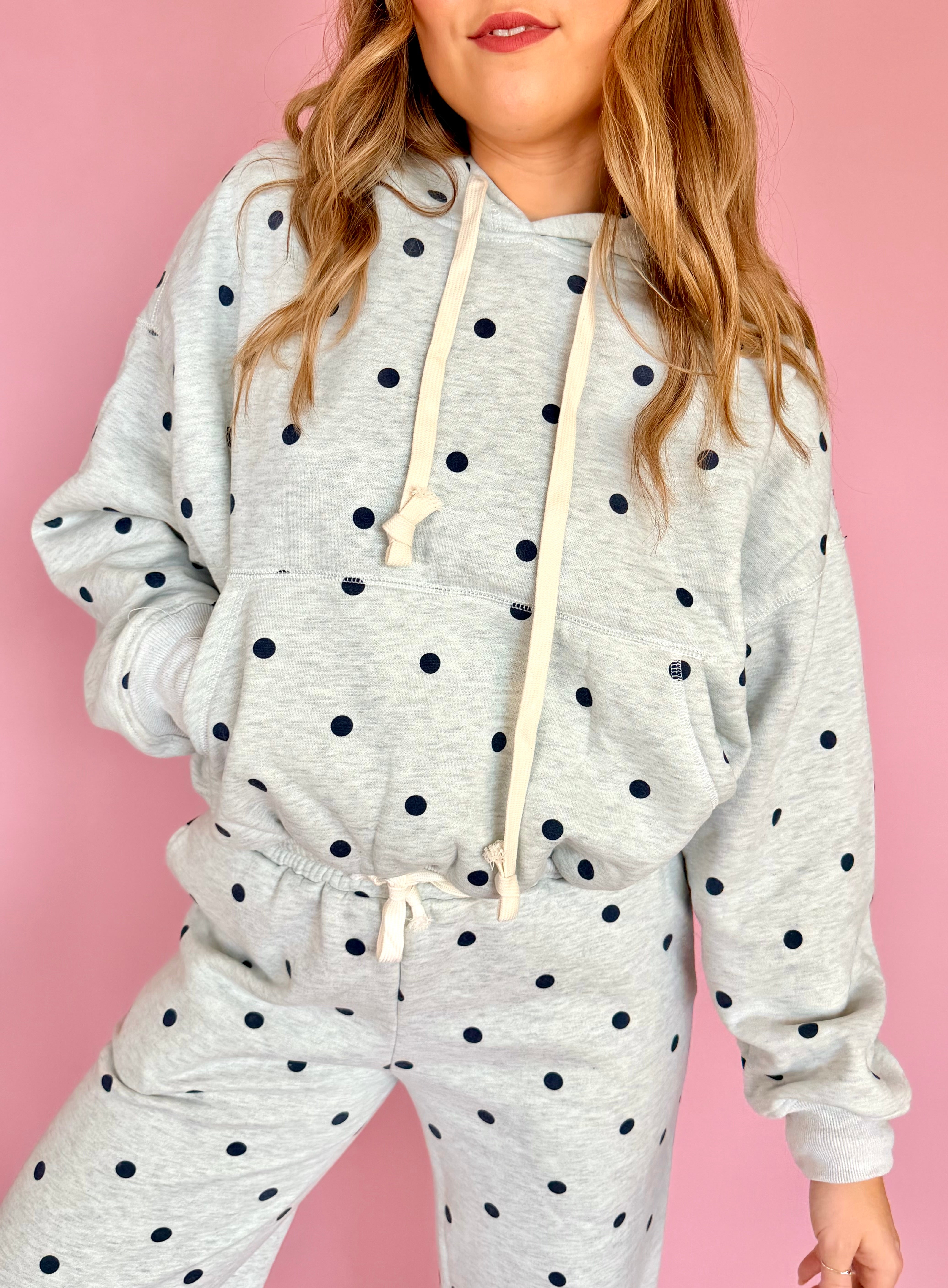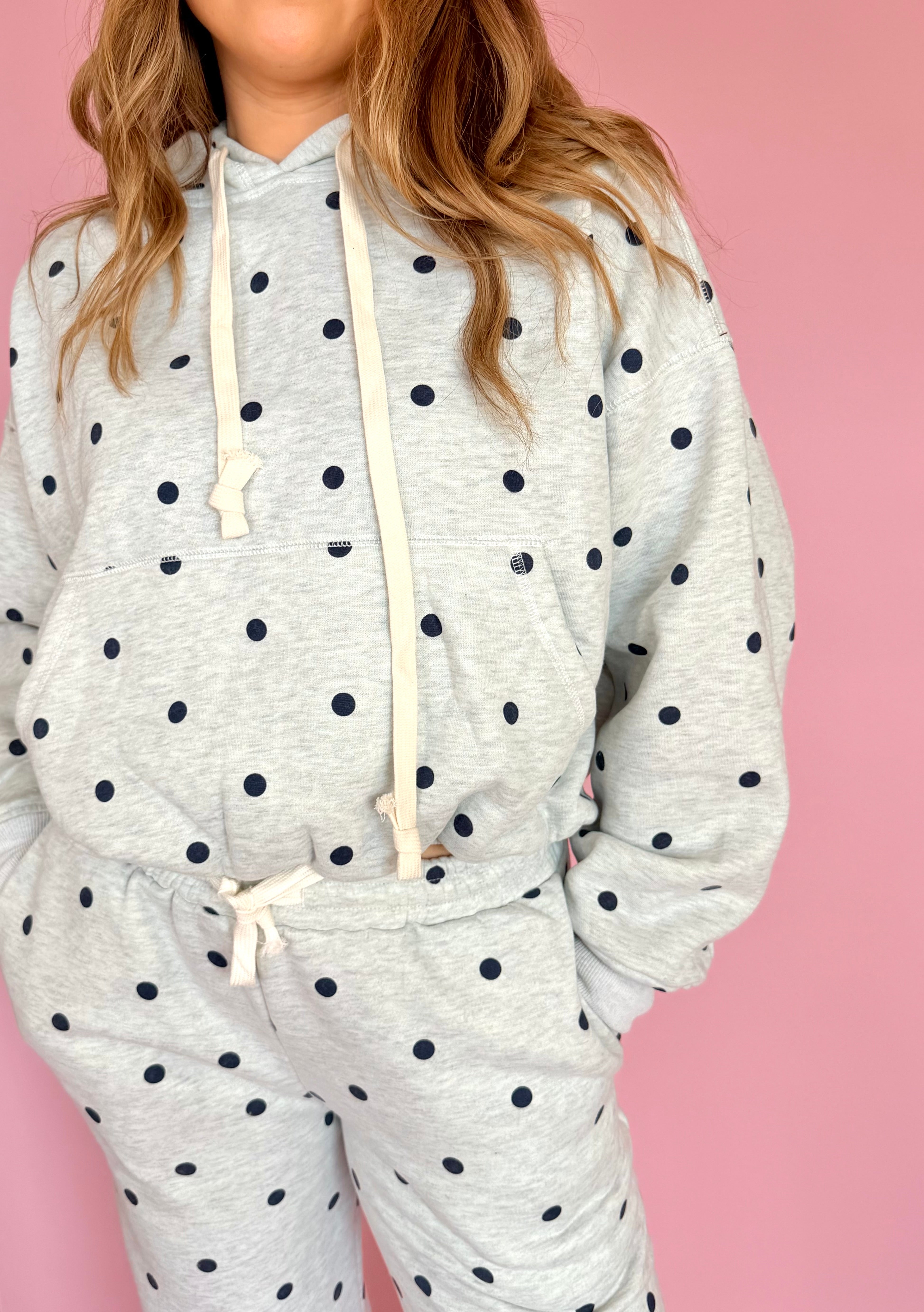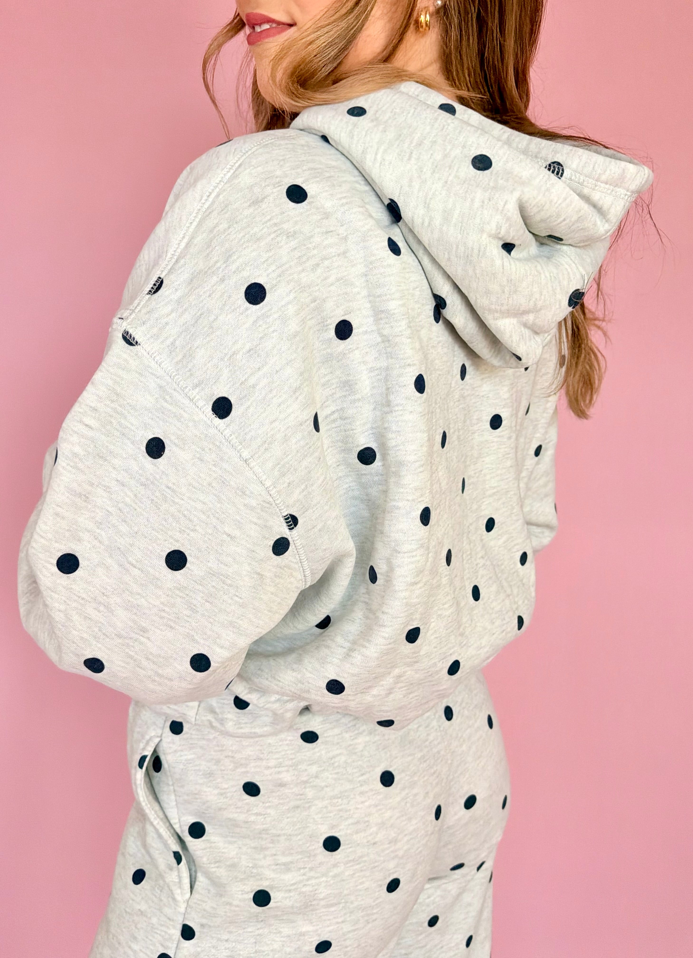 Printed Bubble Hem Polka Dot Knit Hoodie