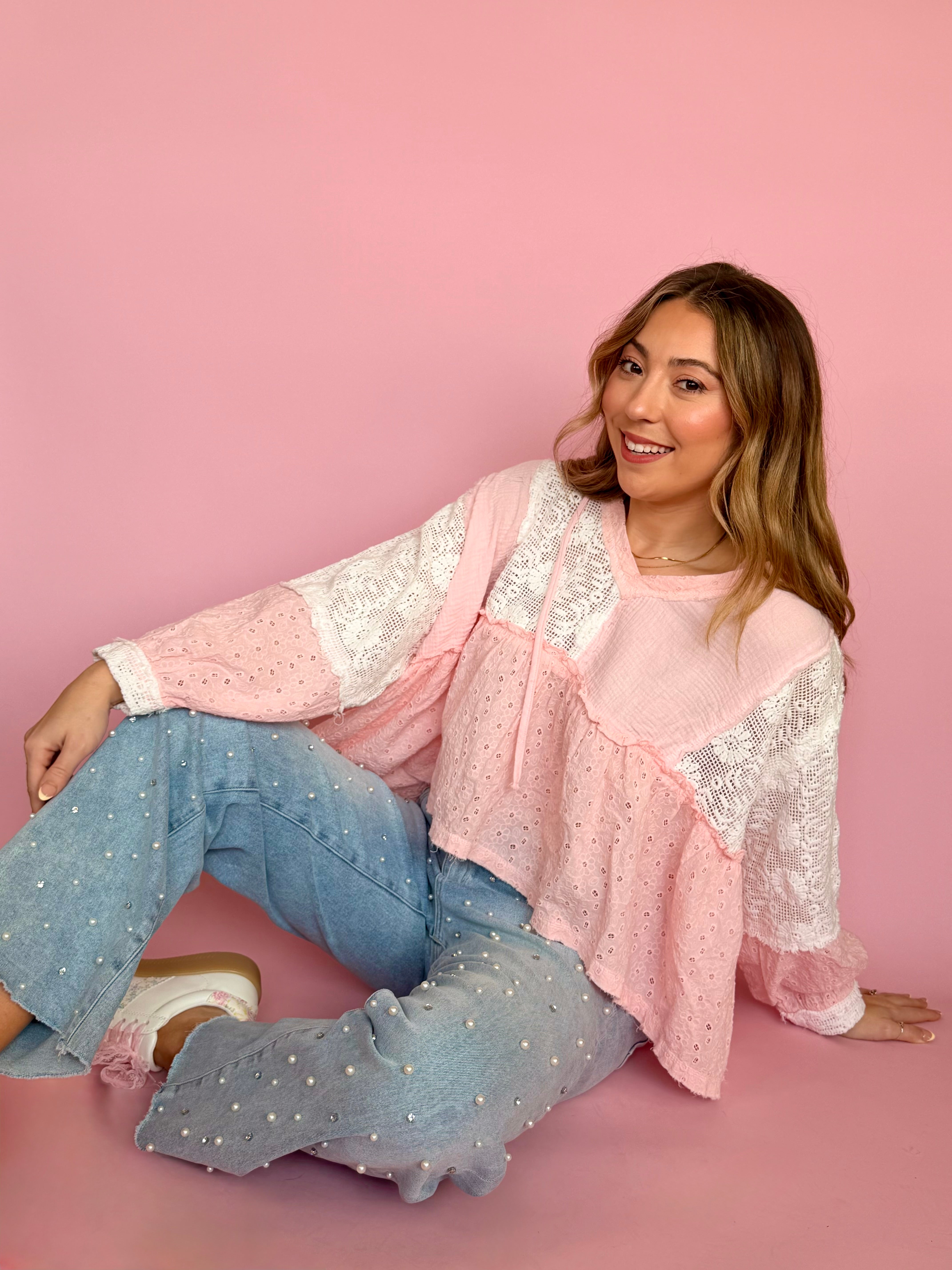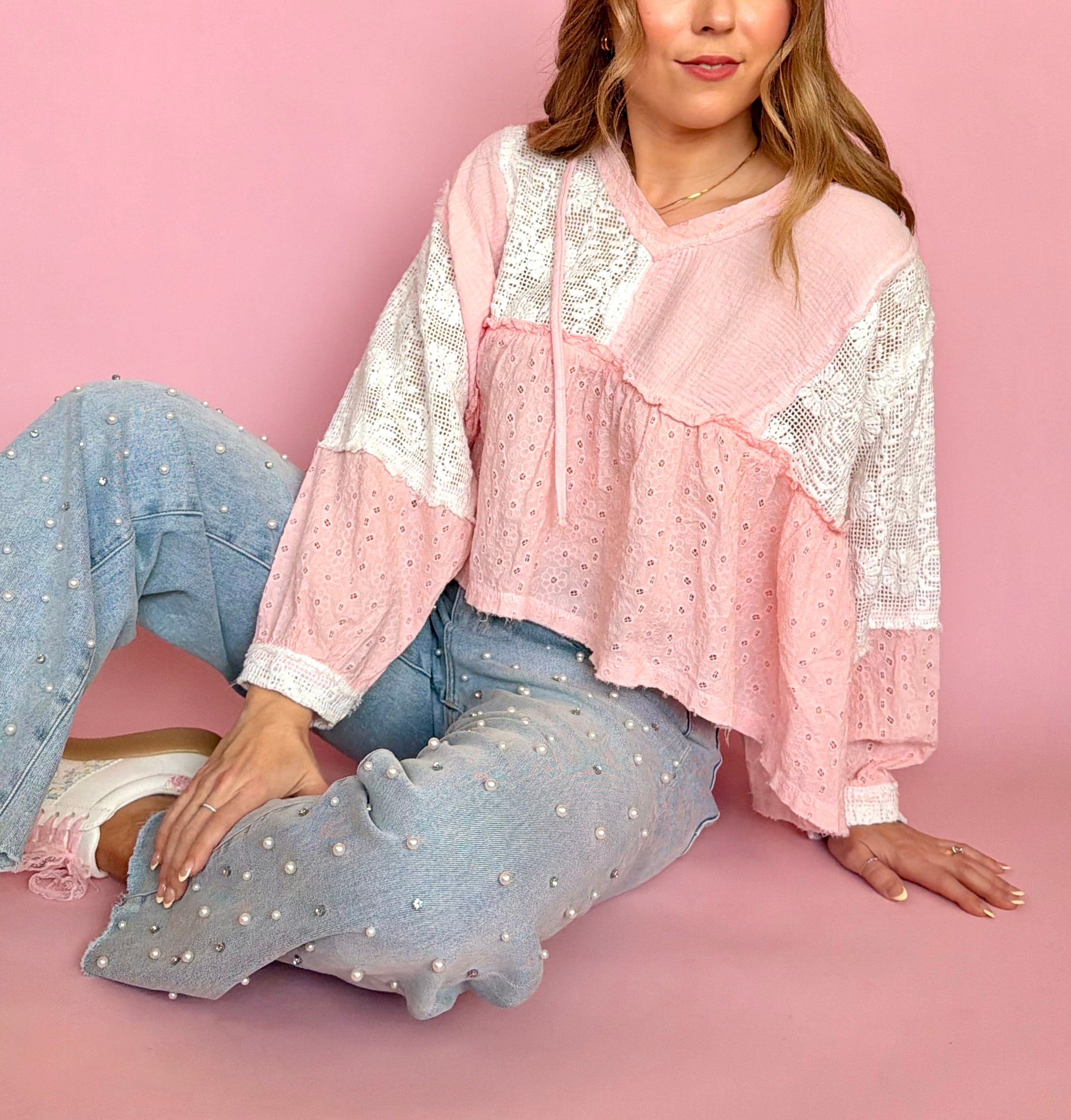 POL Boheme Breeze Hoodie Top: Baby Pink
