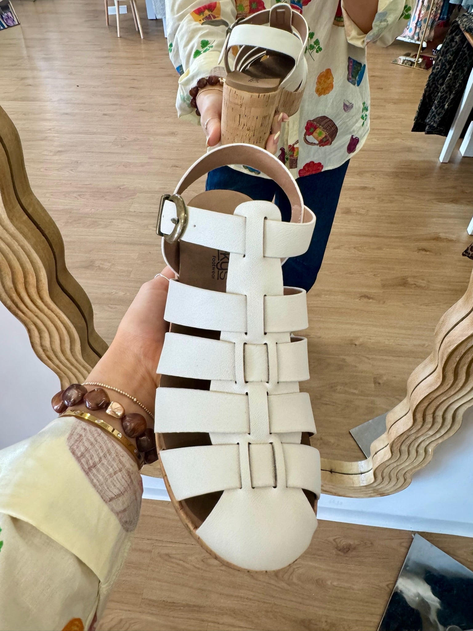 - Cork platform with chunky block heel for added stability