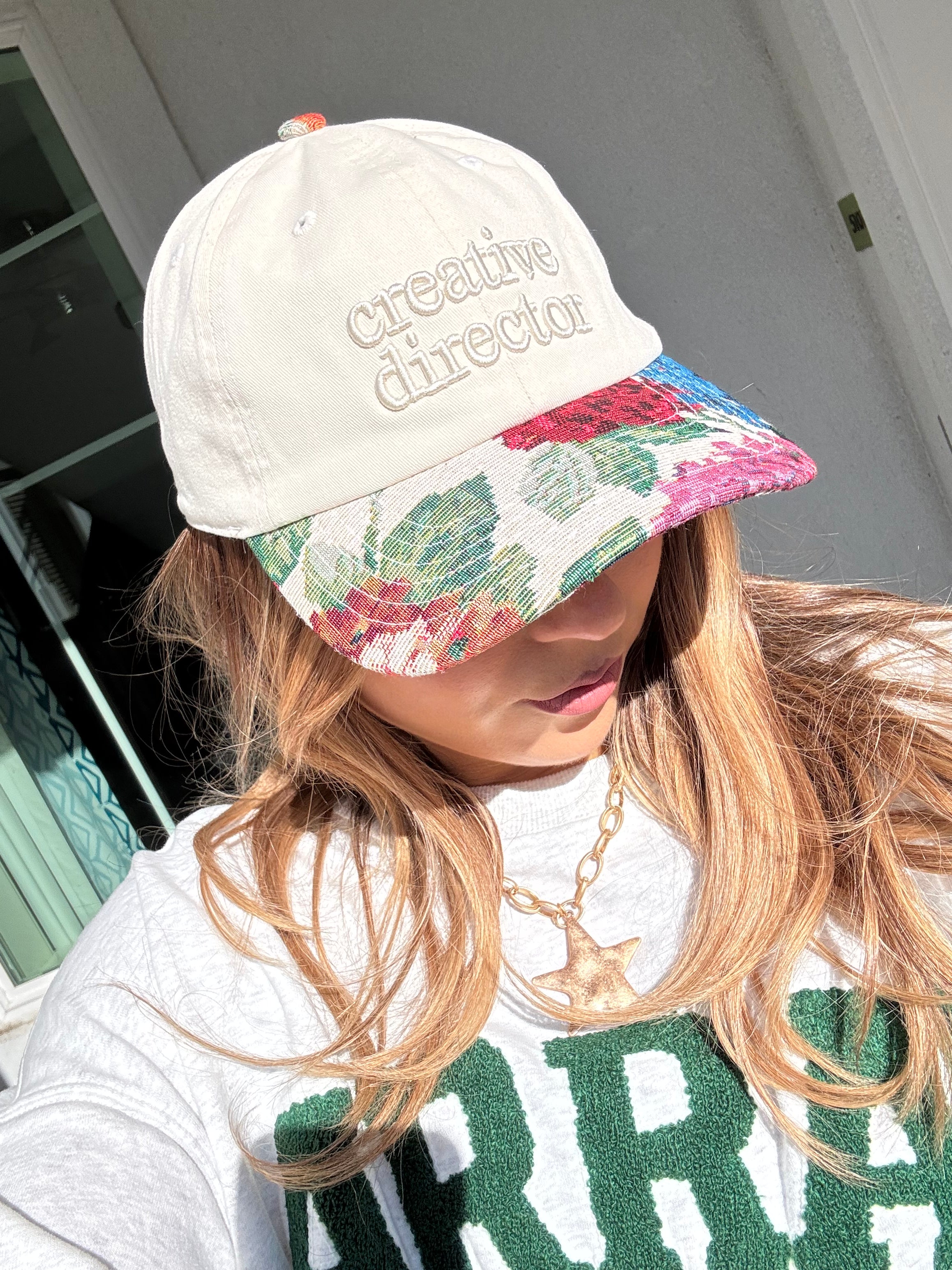 Step into style with the Creative Director Dad Cap! Its adjustable back ensures a perfect fit, while the unique tapestry design adds a touch of individuality to your look. Experience comfort and coolness effortlessly—this cap is perfect for any casual outing. For the CEO’s & Creatives 💚