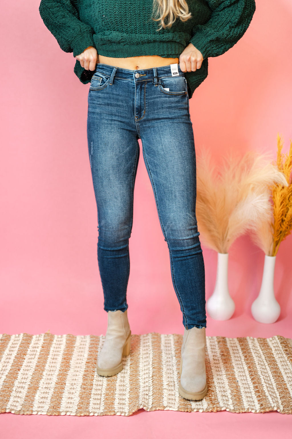 Live your best life in these Judy Blue Never Fails Mid-Rise Skinny Jean that offer the perfect balance of sass and class. With minimal distressing, raw hem, and a look that can be dressed up or down, you'll feel like you're in your coziest leggings — but cuter! Upgrade your denim with this style that just works with everything!