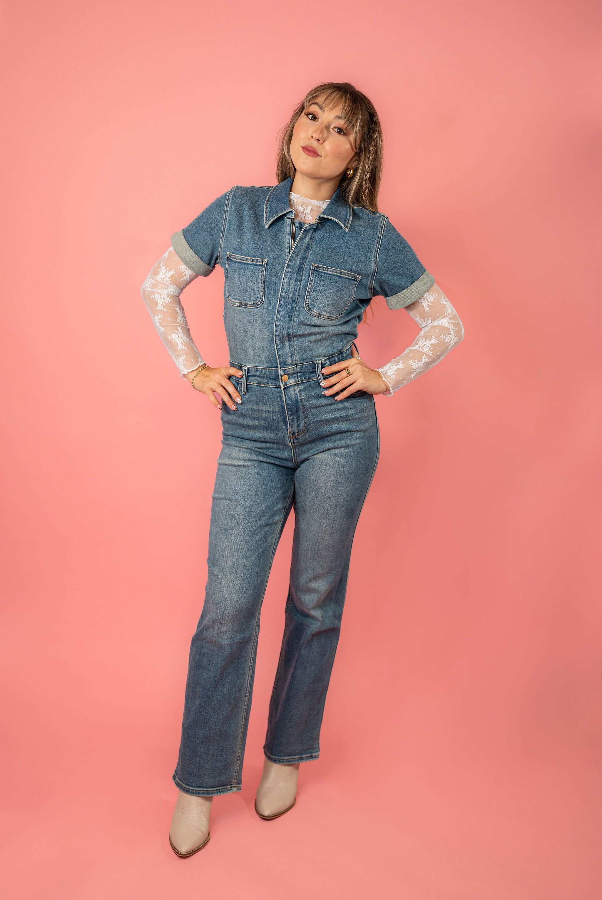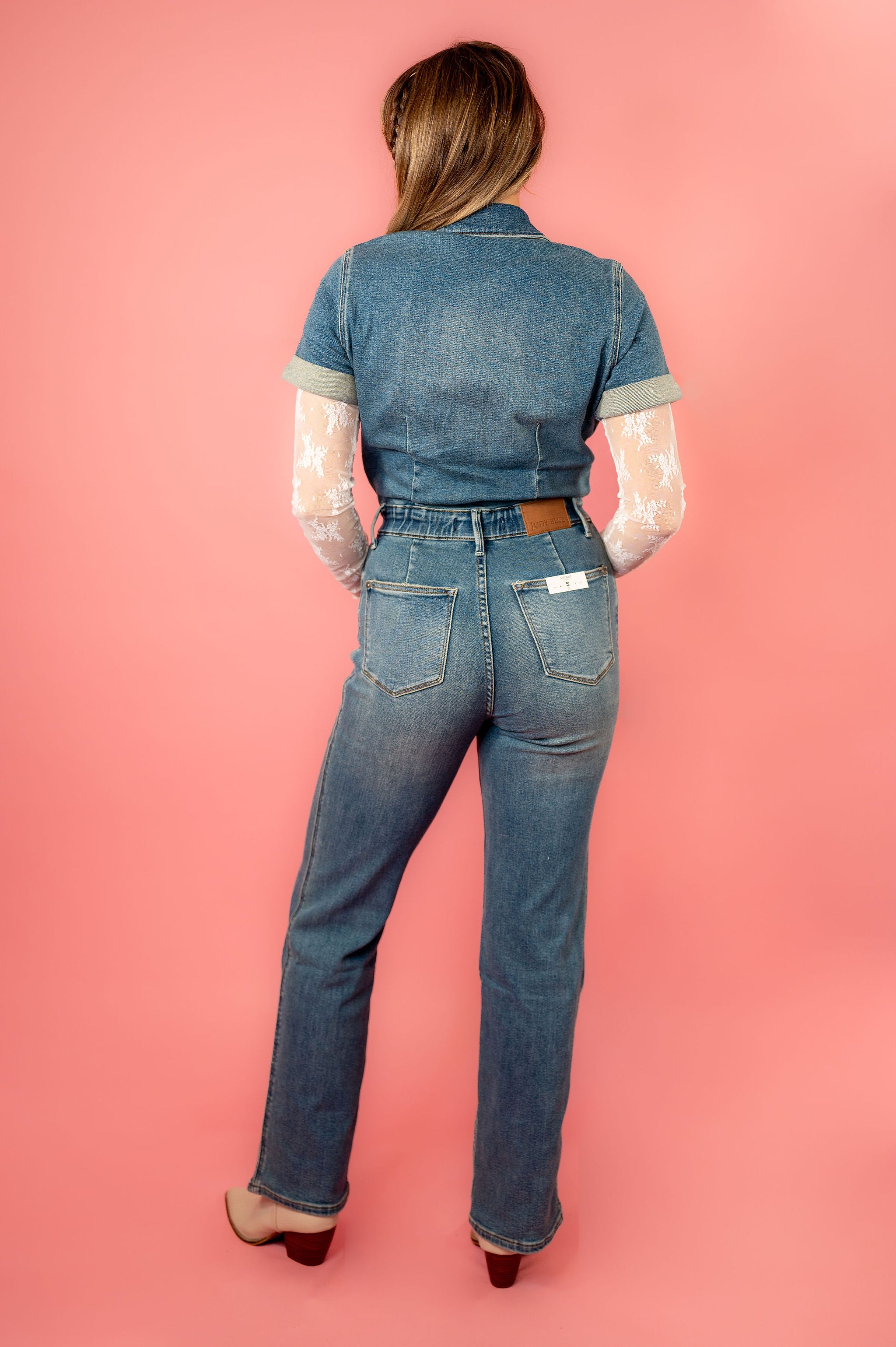 Step out in style and be the talk of the town in this Judy Blue Short Sleeve Straight Leg Jumpsuit! Crafted with stretchy denim fabric, this all-in-one piece is a year-round staple you can't live without. Cut in a flattering straight-leg silhouette and complete with a functional zipper and snap closure, cuffed sleeve, and non-distressed design, this jumpsuit is an unquestionable sign of perfection!
