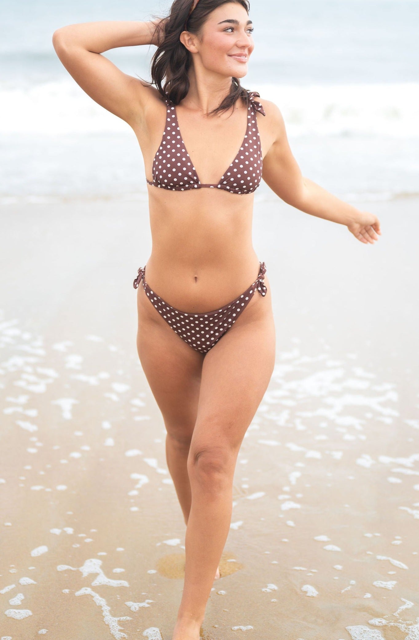 Meet Lucy — a cheeky bottom with side knots for a personalized fit and extra fun. The thick, supportive ties will keep you feeling confident throughout all your adventures. Style Lucy with our Lola Top for a seamless pairing. Polka Dot perfection!