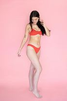 A new favorite for all our sporty girls. The Britney Top’s supportive and versatile style will keep you reaching for it again and again. Adjustable straps and a back hook closure ensures a customizable fit. Poppy red is the perfect orange red color for summer!