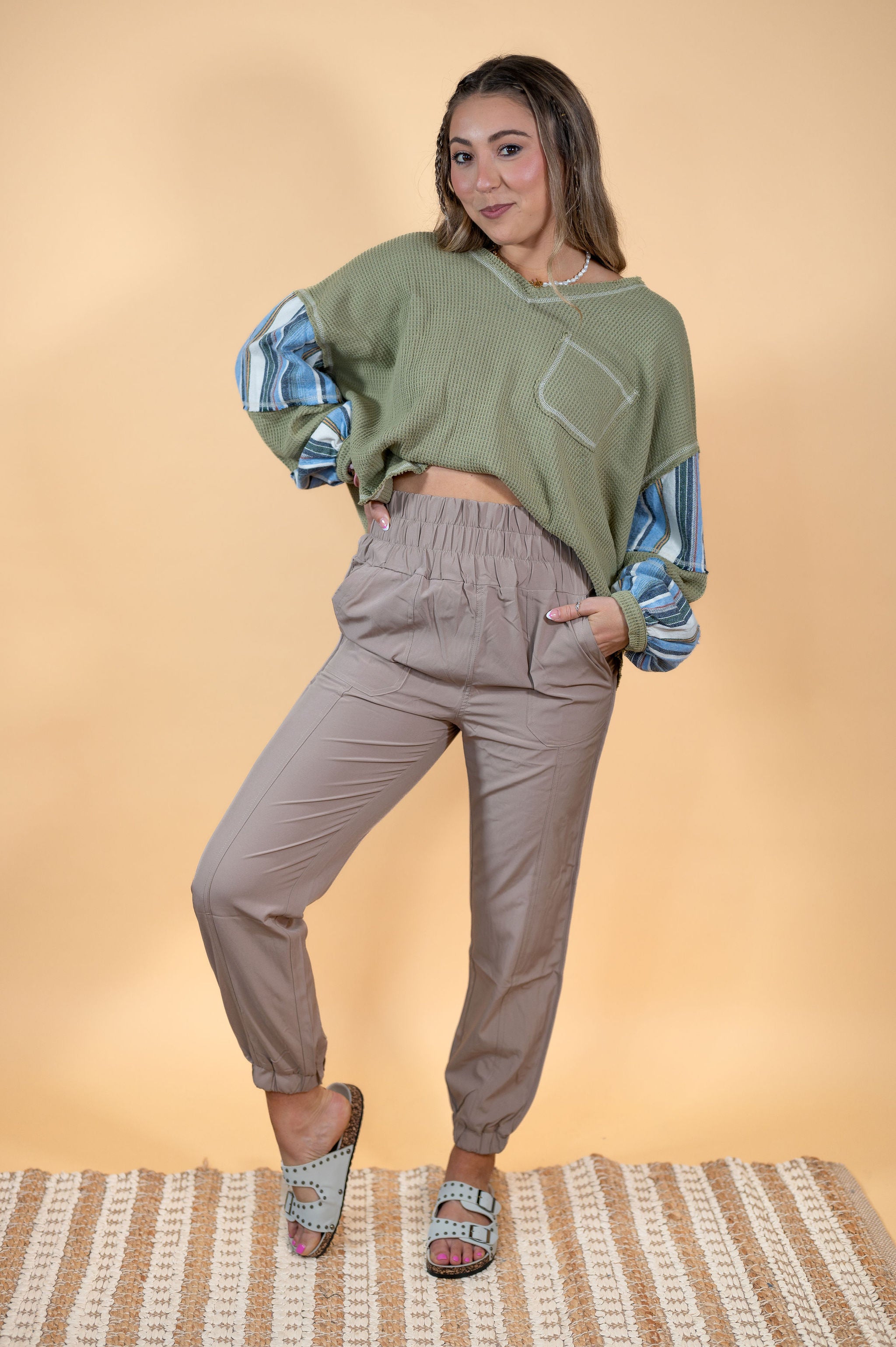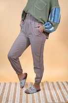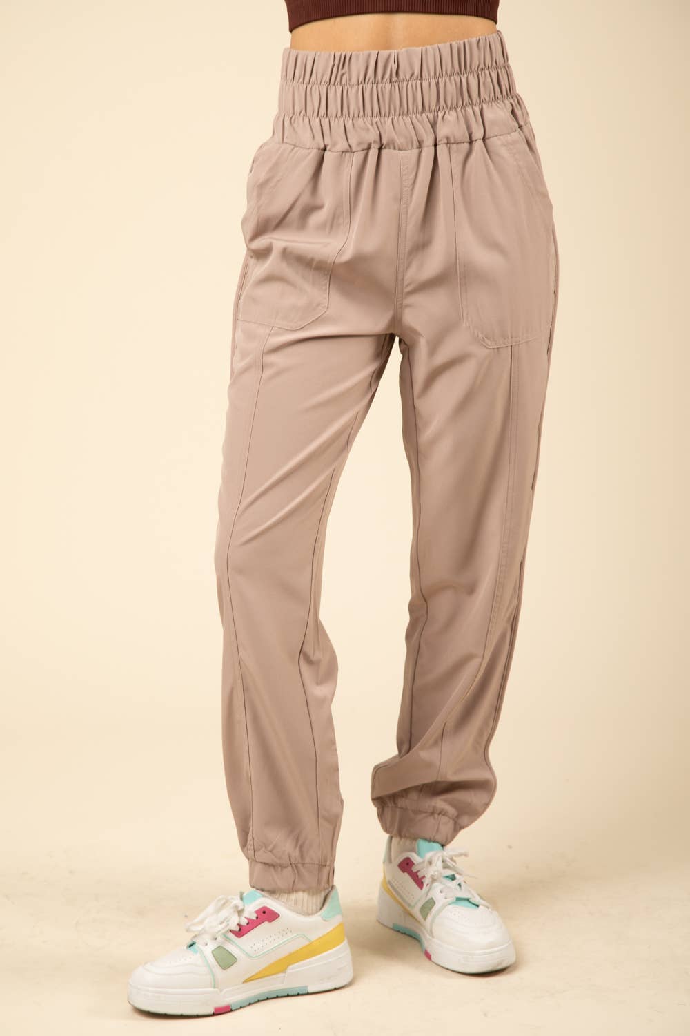 Wide Elastic Waist Comfy Jogger Pants: Taupe