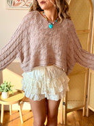 Grab this adorable caramel almond sweater and you've got instant outfit magic. The twisted cable knit design adds visual interest while staying lightweight and breathable, so you can layer without the bulk. With its cropped length, round neckline, and relaxed fit, this acrylic knit hugs you in all the right ways—structured enough to hold its shape, soft enough to feel like a warm hug. Throw it on with literally anything and watch your wardrobe come alive.