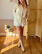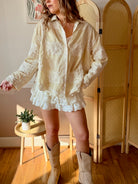 Sunshine never looked so good! This breezy yellow button-up is your ticket to effortless style. With long sleeves, a relaxed fit, and charming lace and crochet embroidery throughout, it's got all the cute factor you need. Rock it fully buttoned for a put-together vibe or leave it open as a flowy layer over your favorite tee. One size fits all the good vibes.