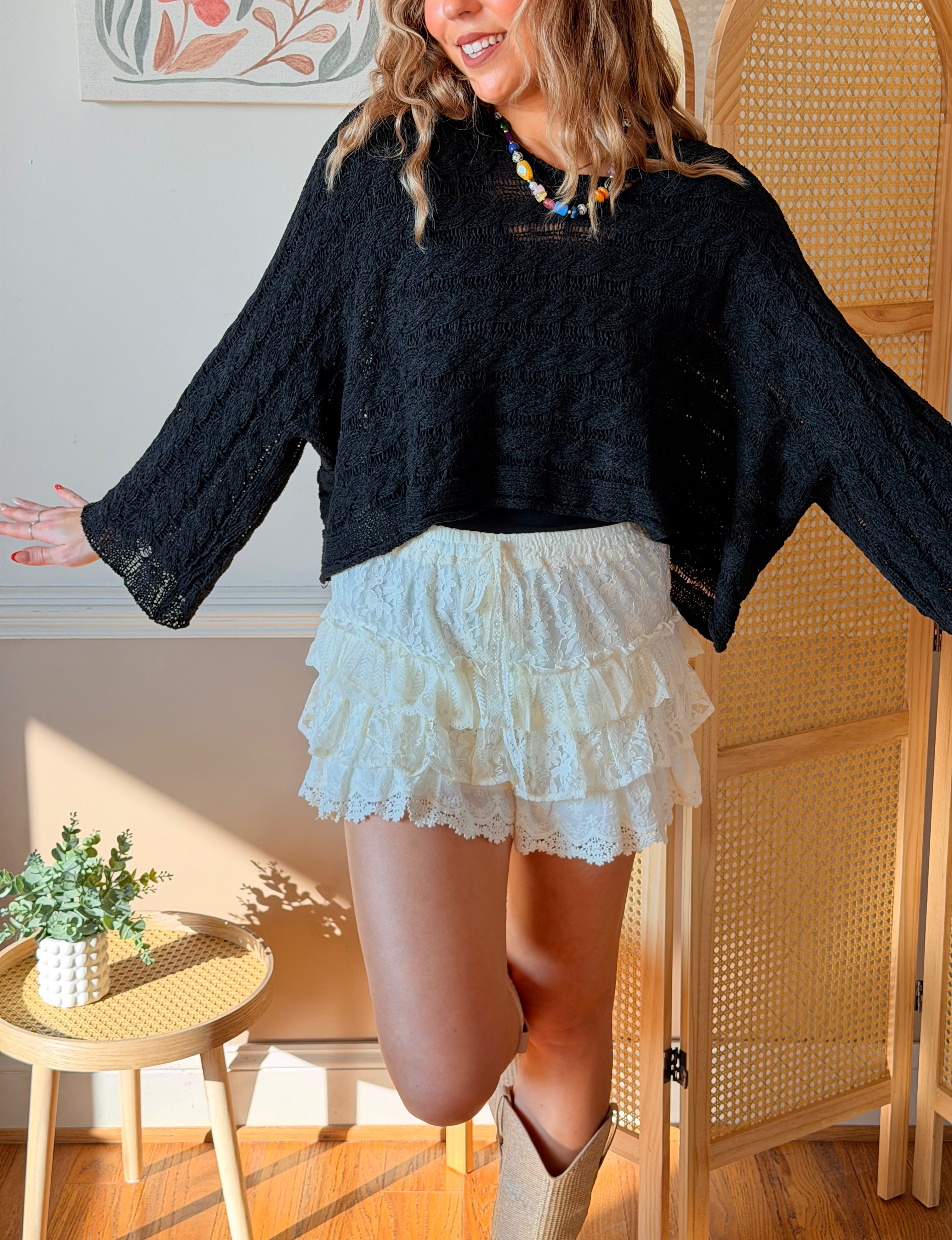 POL Sweet Twist Lightweight Knit Sweater: Black