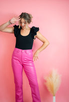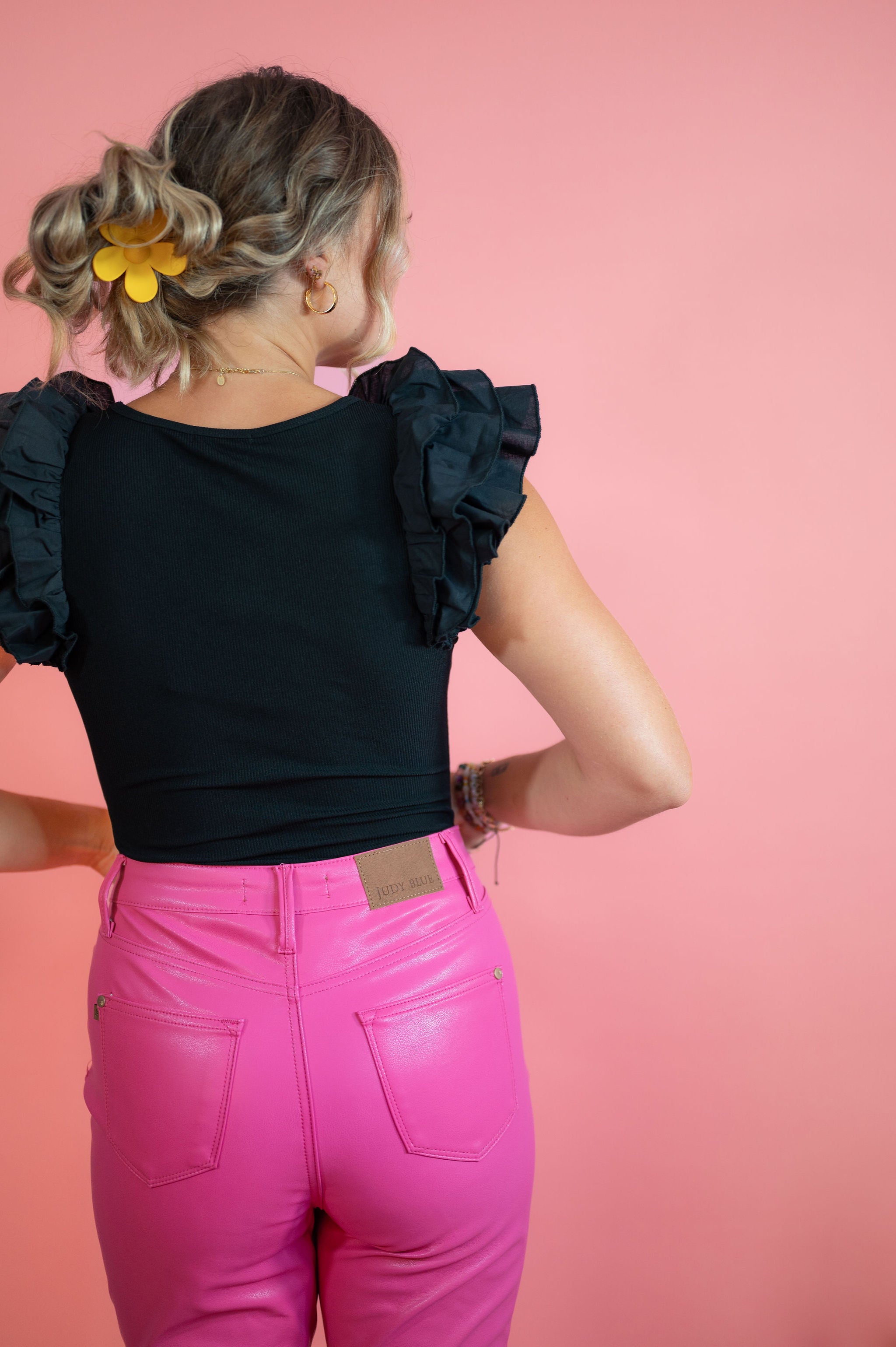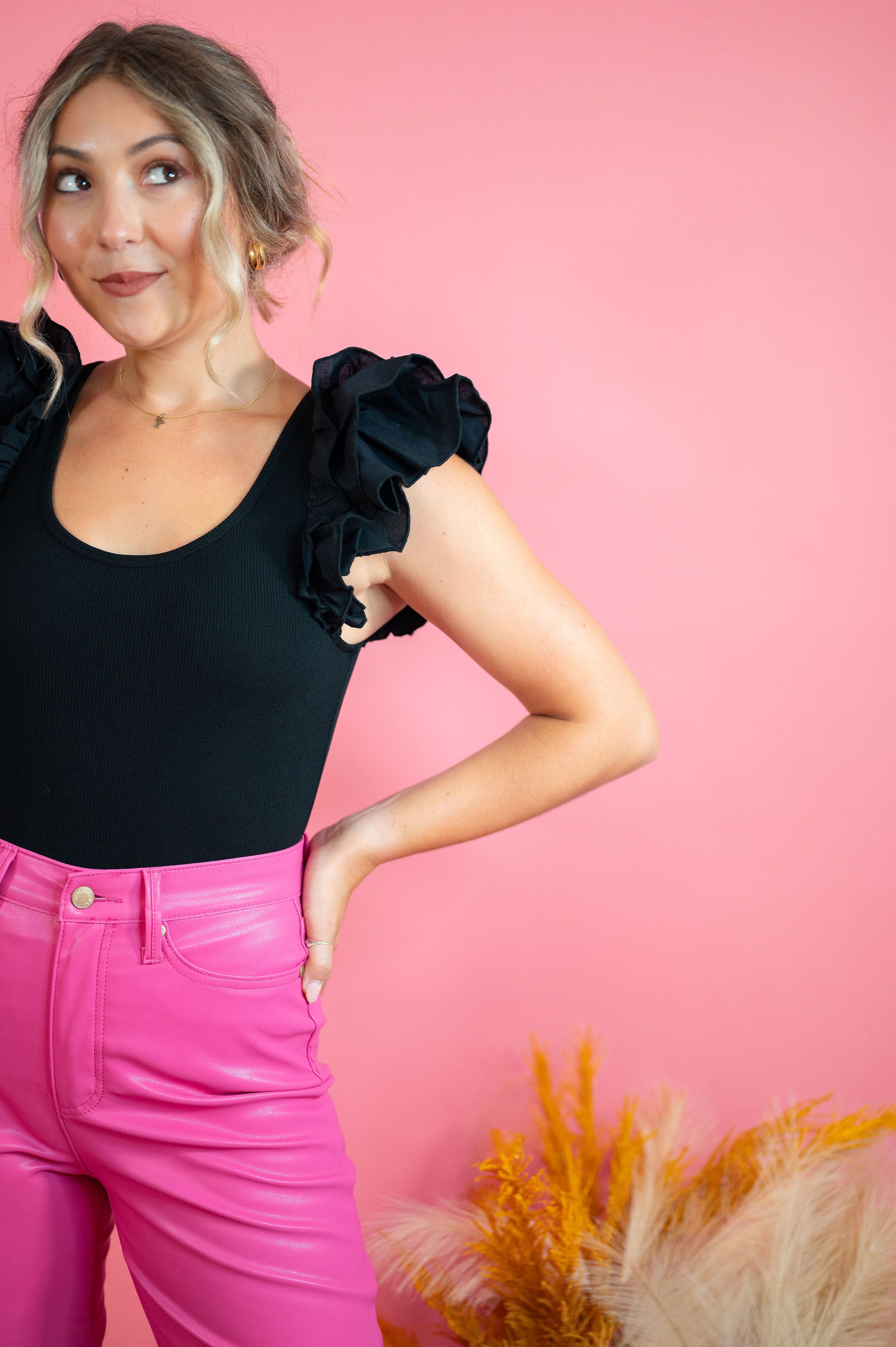 Look absolutely lovely in our Ruffle Shoulder Scoop Bodysuit! Its dainty ruffle sleeves and delicate scoop neckline bring romantic, feminine flair to any occasion, while the snap closure makes it easy to slip on and off. This bodysuit runs small for a comfortable, flattering fit.