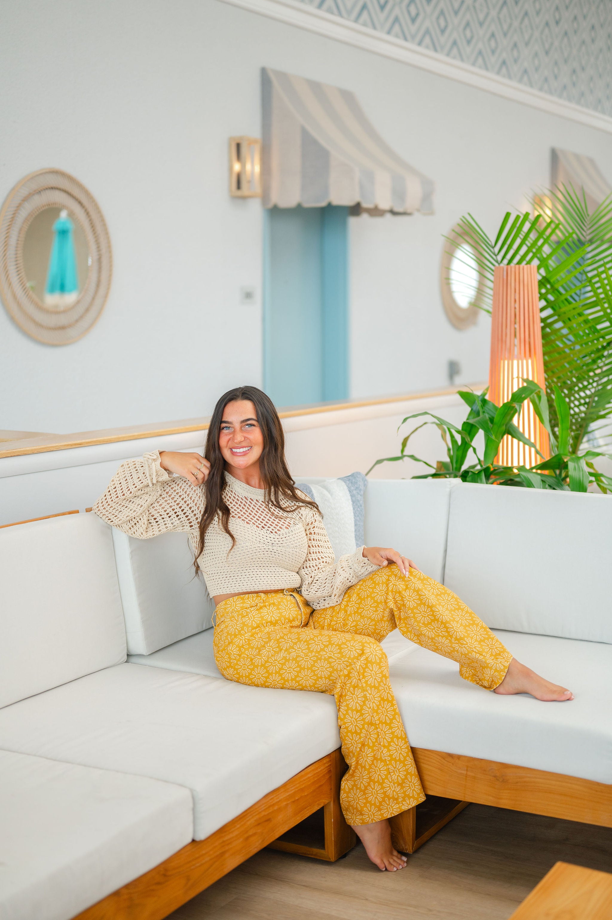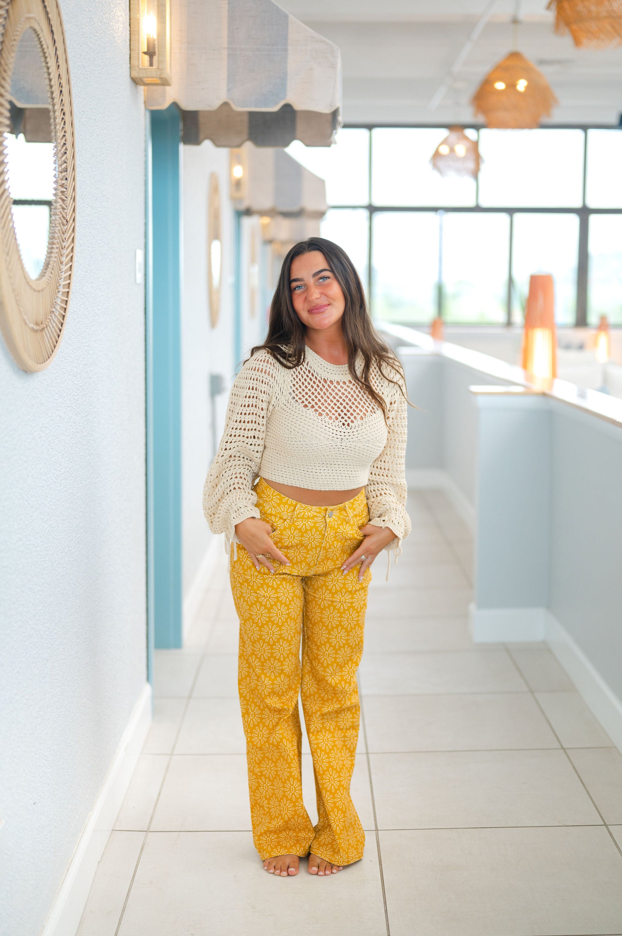 Stay stylish and comfortable with our Soak up the Sun Patterned Pants! These high waist pants are made with a cotton, poly, spandex blend for a comfort fit. The straight leg design and 29" inseam provide a flattering silhouette. Perfect for lounging or running errands on a sunny day!