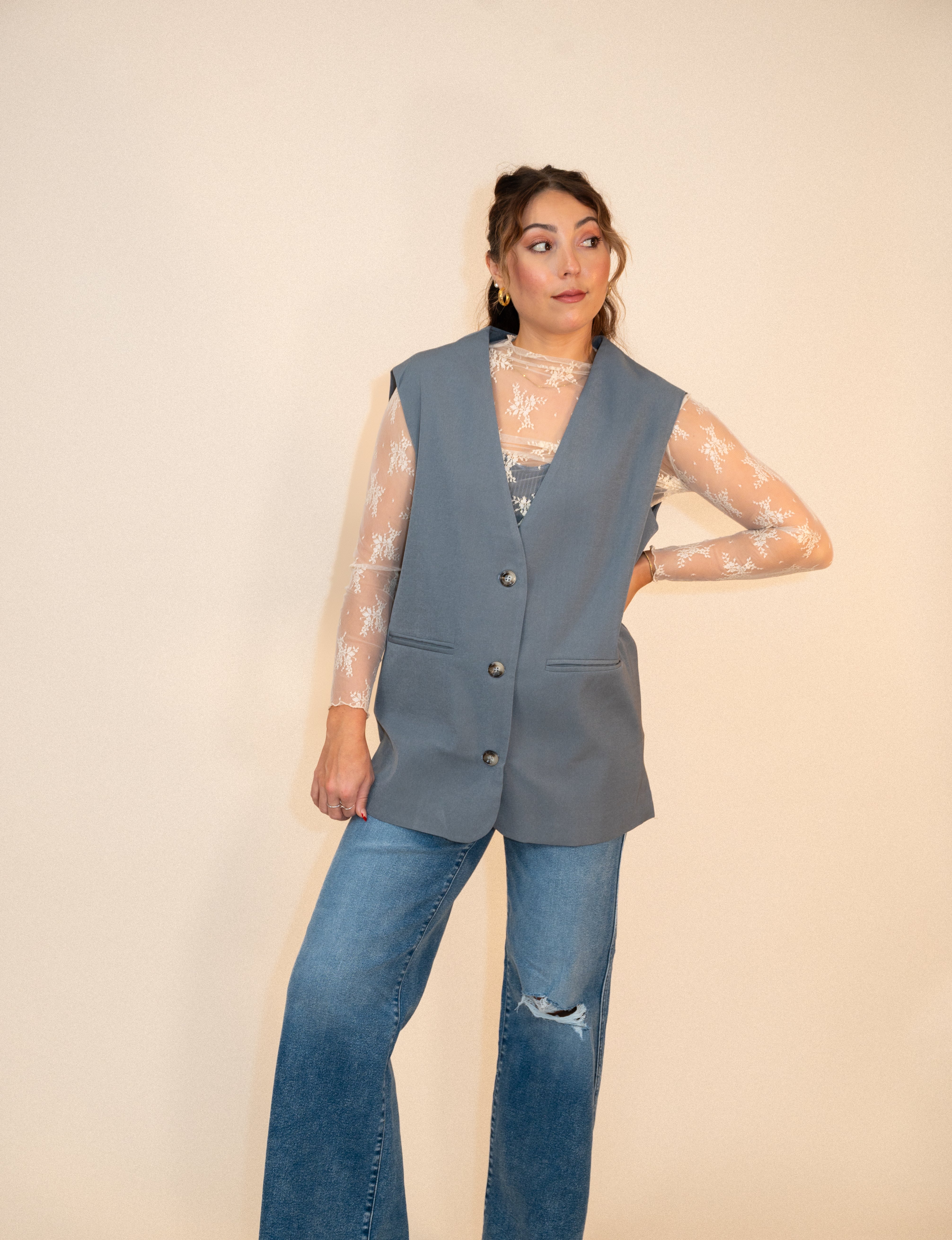 Tailored Longline Vest: Denim