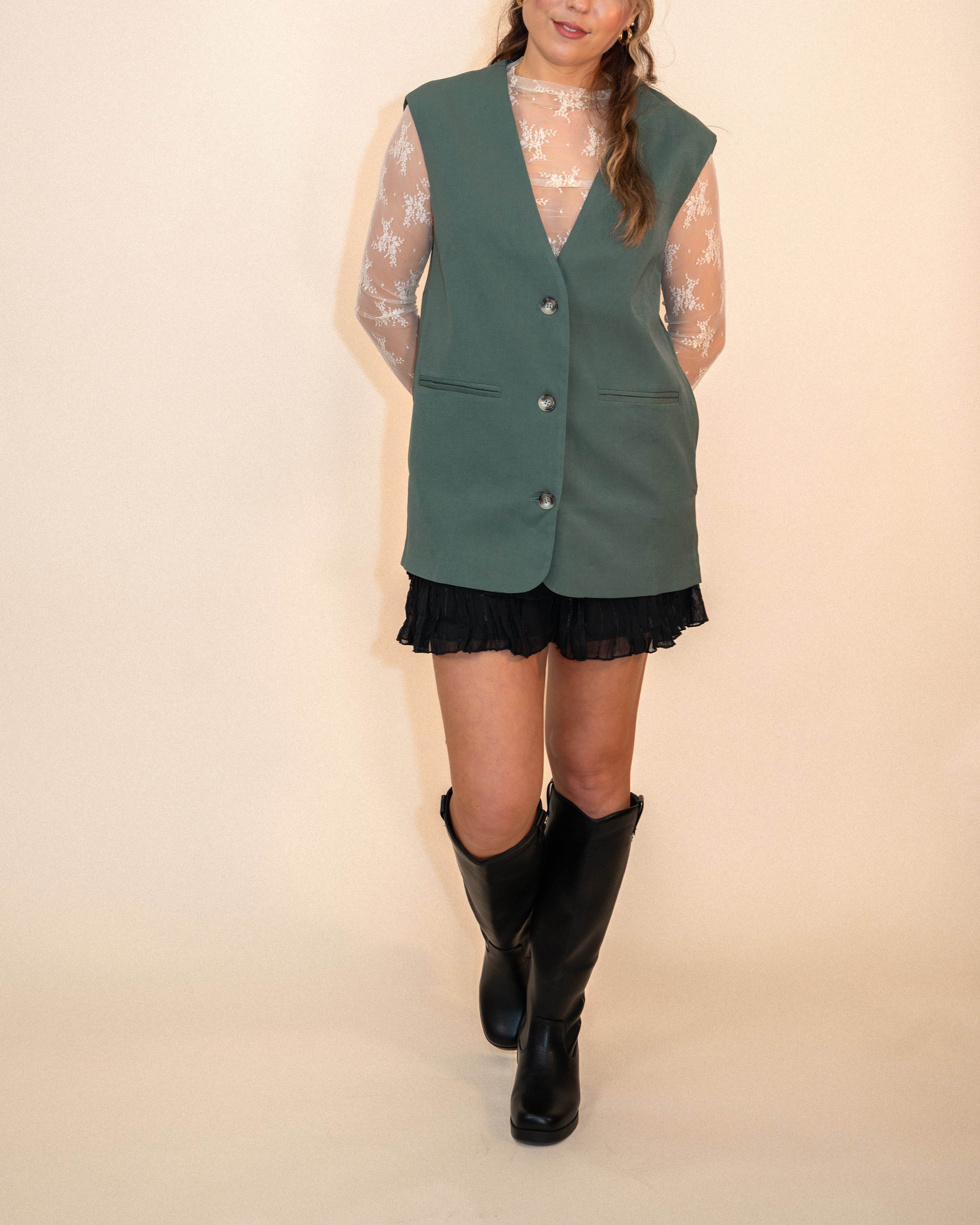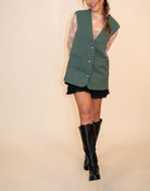 Elevate your wardrobe with this chic longline vest that's basically a style shapeshifter! Crafted from premium fabric with a smooth, structured finish, it features a flattering deep V-neckline and front button closure for that polished vibe. The relaxed, slightly oversized fit makes layering effortless—throw it over your favorite blouse or rock it solo as a mini dress. Fully lined for comfort, complete with hidden side pockets because practicality is always in style. Whether you're going for sophisticated or playful, this versatile piece has got you covered.