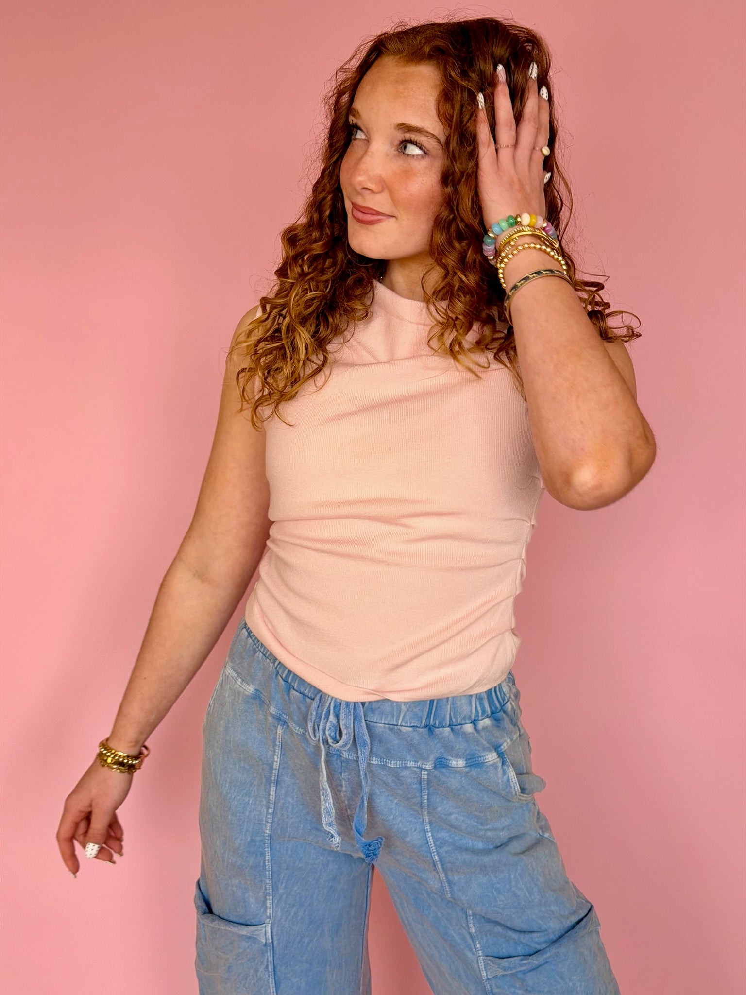 Elevate your going-out game with this adorable asymmetrical neck sweater top! The playful neckline adds instant charm and sophistication, while the sleeveless cut keeps things breezy and modern. Crafted in a baby pink hue, it's the perfect piece for dressing up any occasion—from casual nights out to special events. Pair it with your favorite bottoms and watch heads turn. Super stretchy, knitted fabric too!