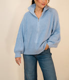Baby Blue Zip-Up Oversized Sweater