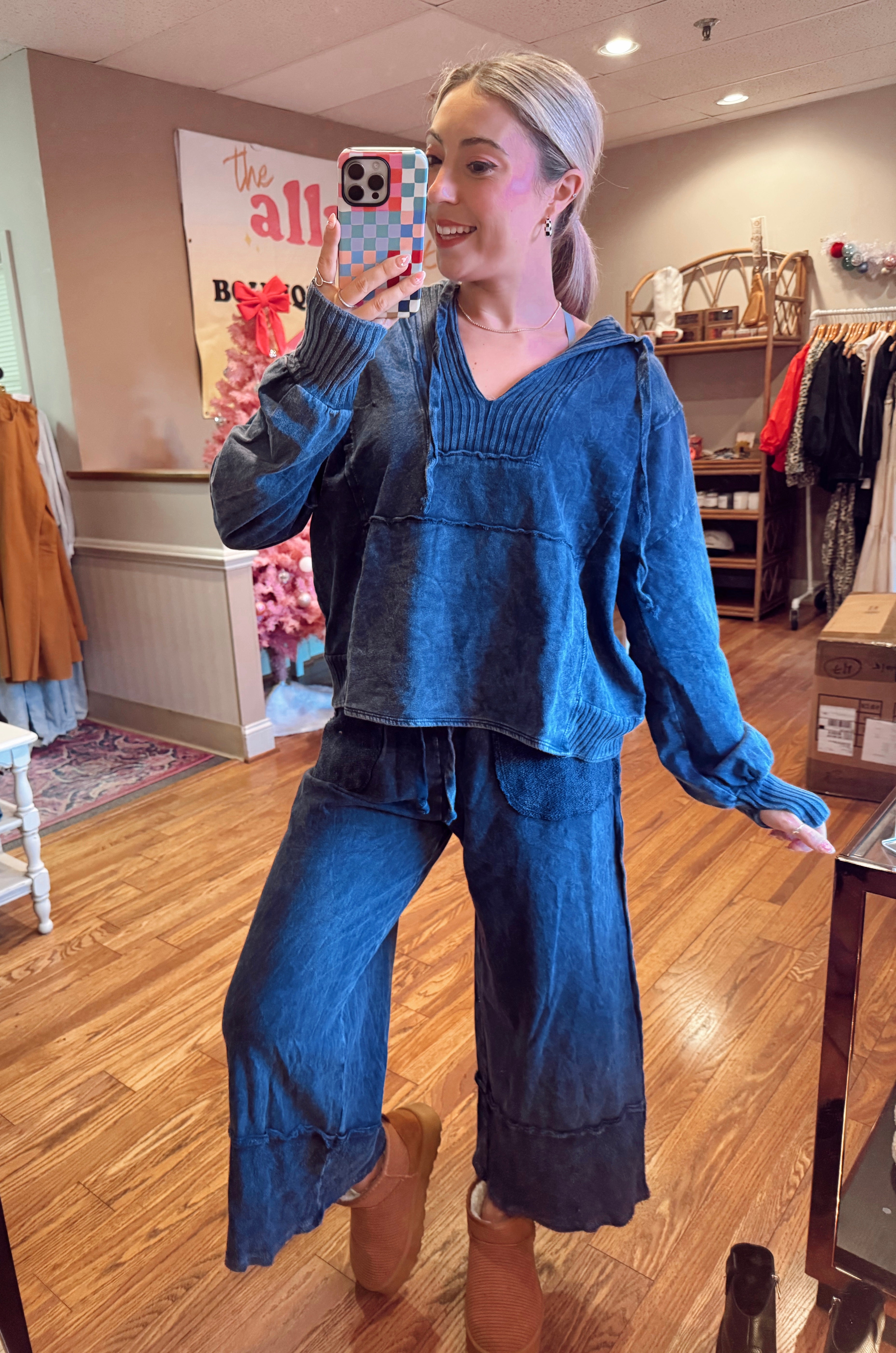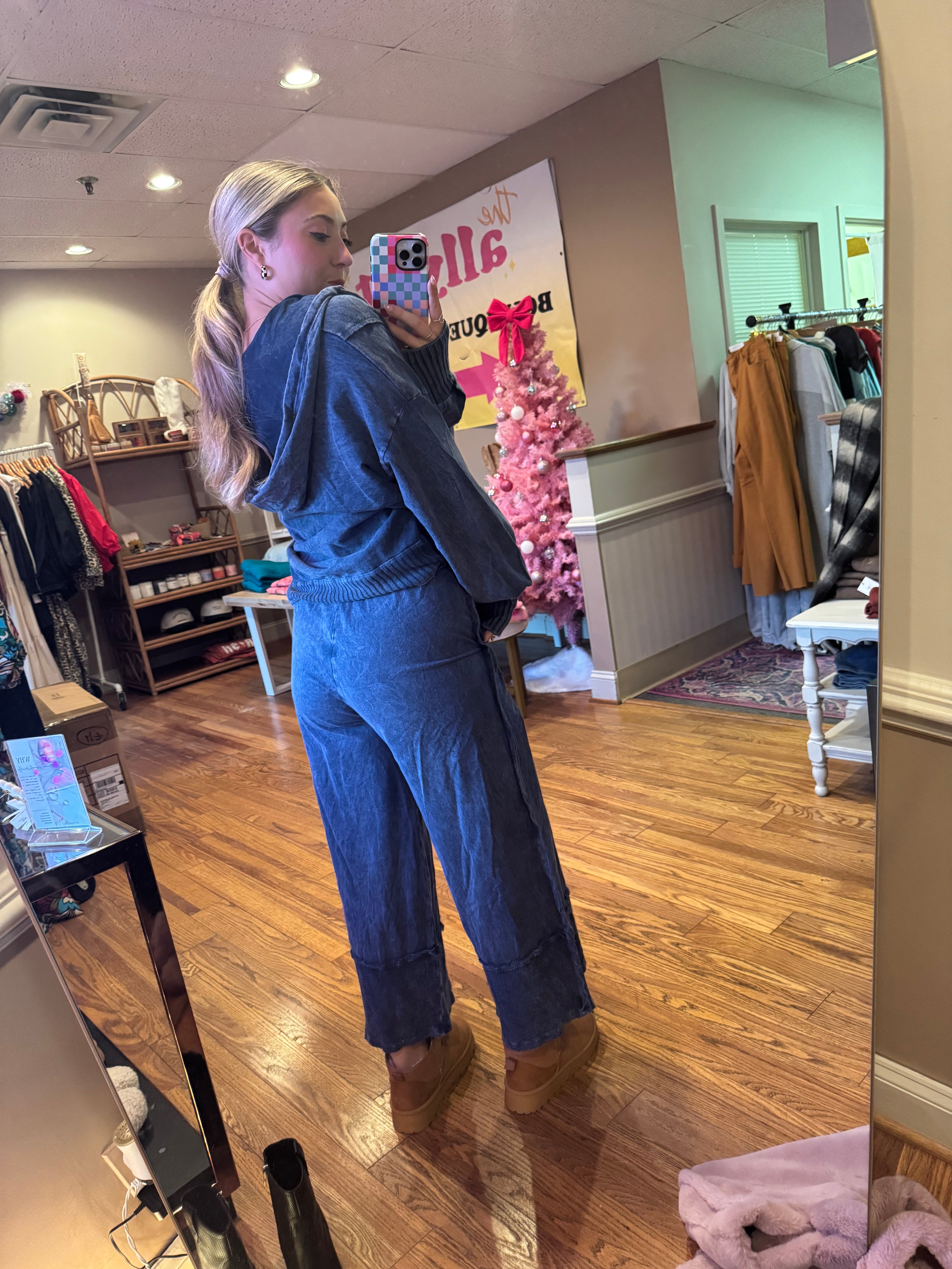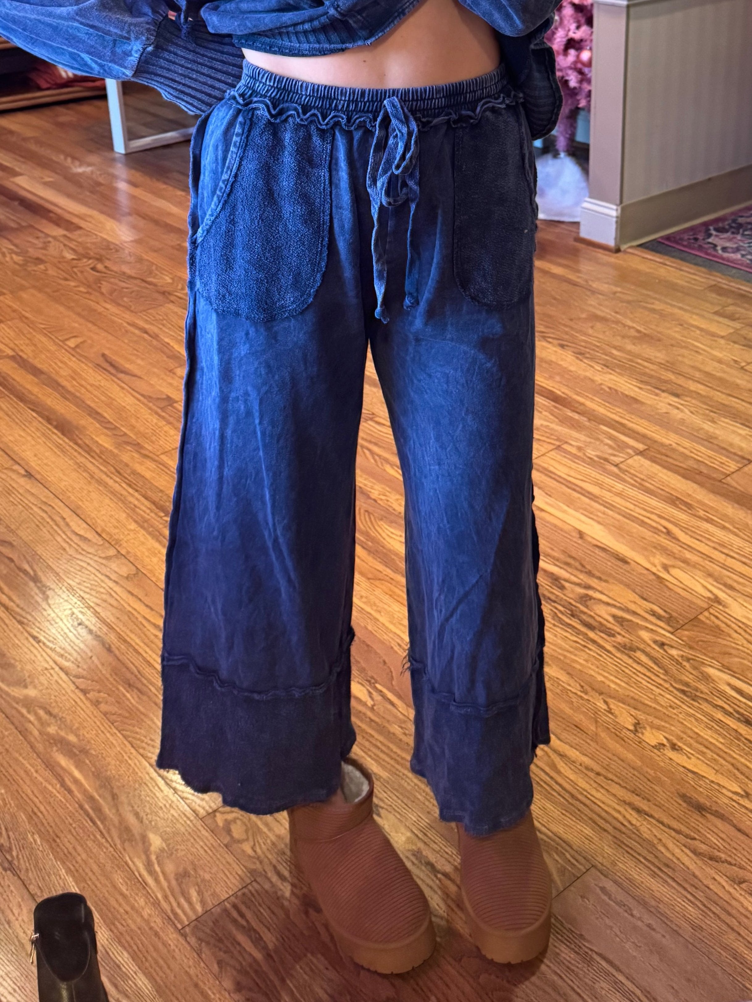 Bohème Mineral Wash Wide Leg Pants: Navy
