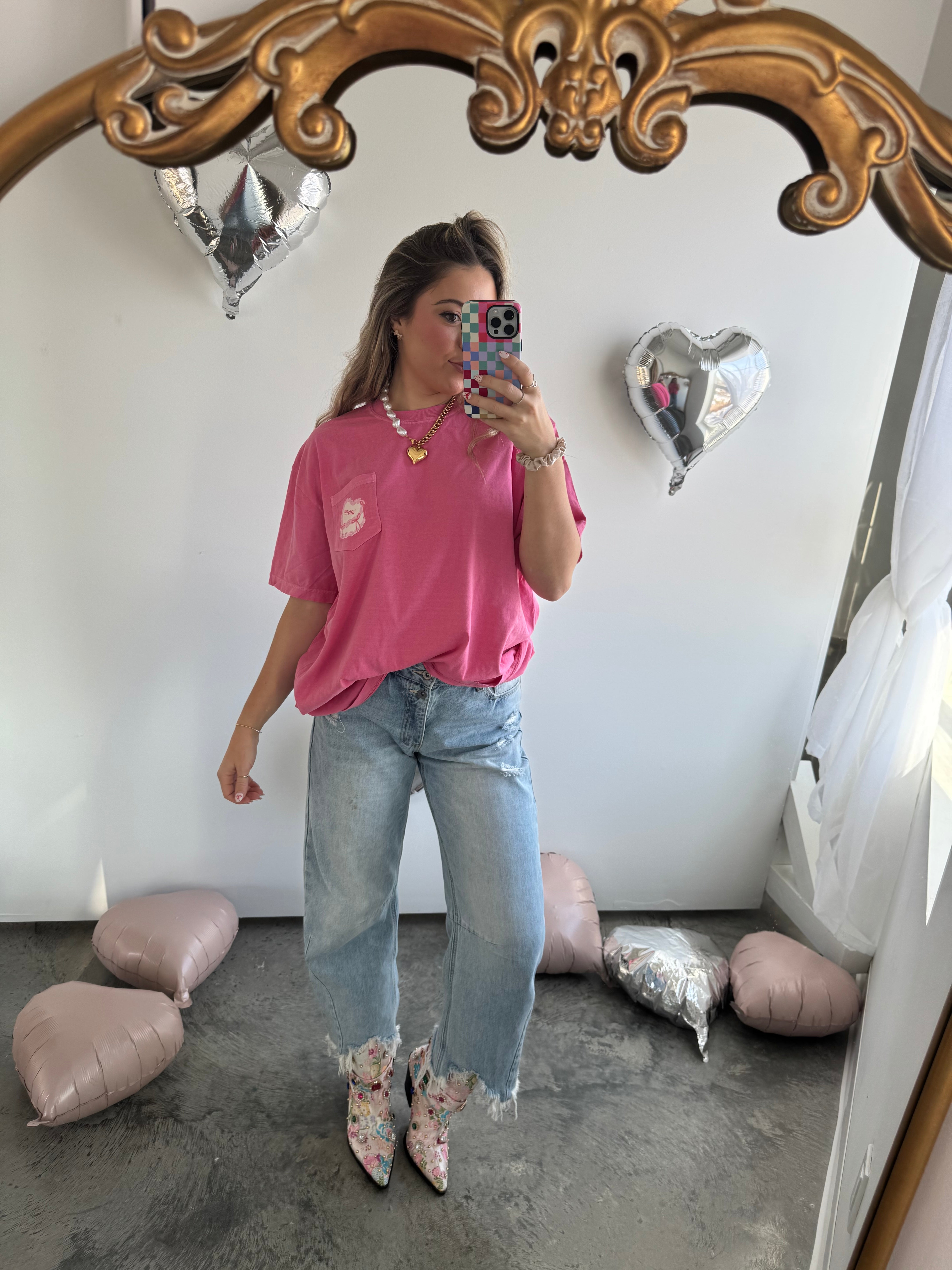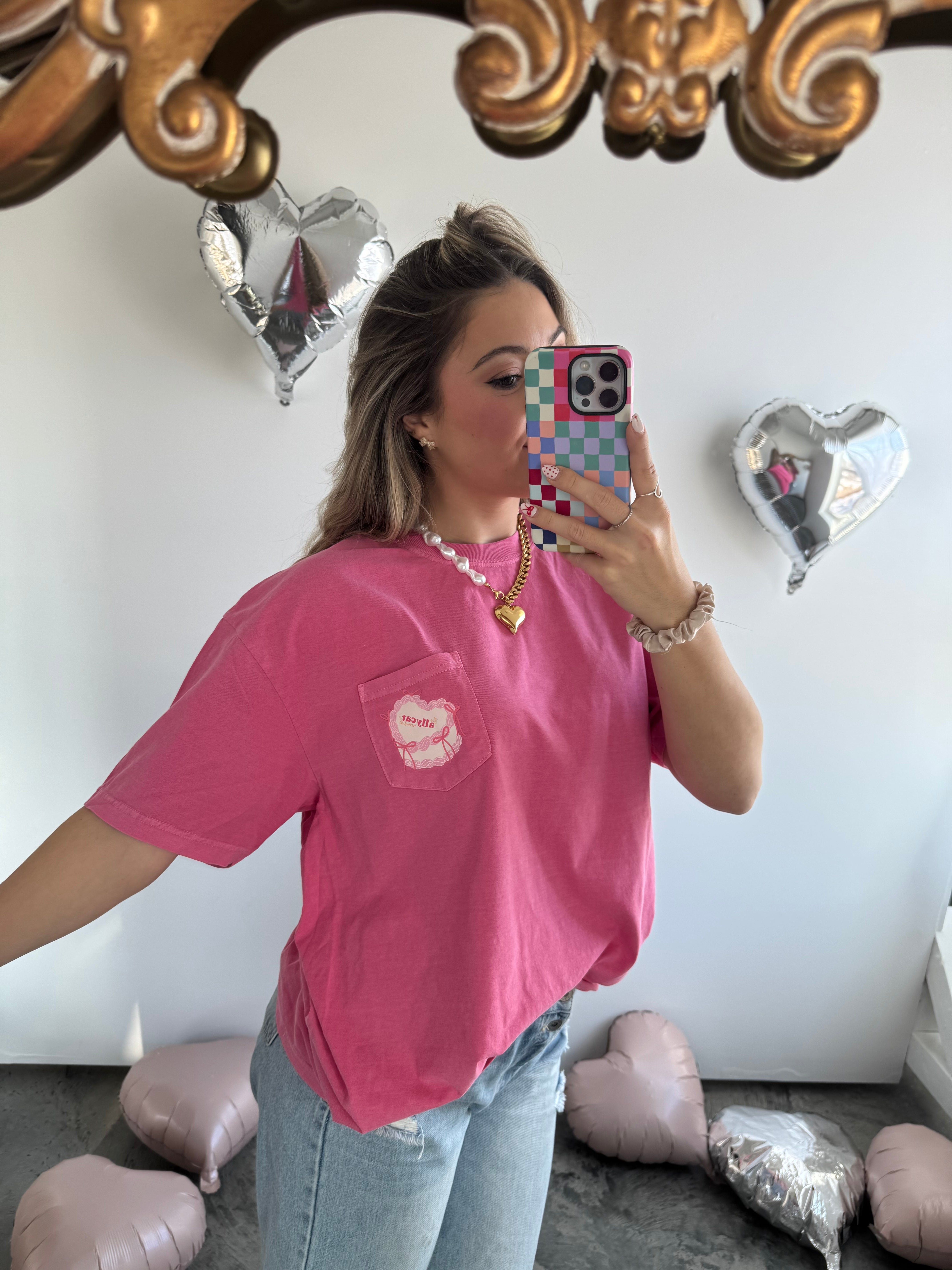 Logo Vintage Heart Cake Pocket Tee: Berry Pink